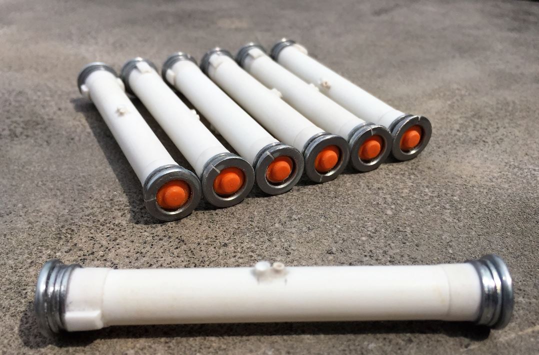 And here is the rack with the missiles temporarily in place for the picture. The straps that hold the missiles in place will only be added at the end, after painting of the rack and missiles. It would look better with at least 2 more missiles, so I will see later if I can summon enough material in time and patience to build more.