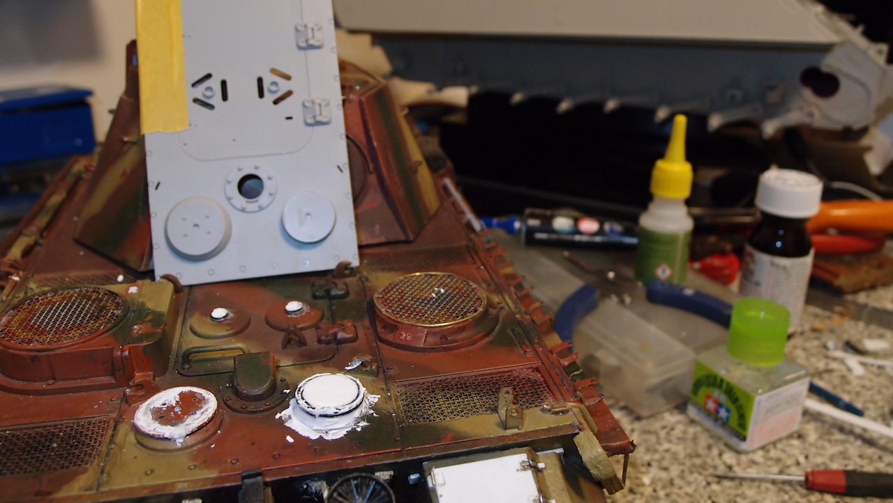 Resizing the covers at rear of engine hatch. Using the Trumpeter kit to check size ,HL ones are undersized.