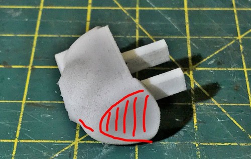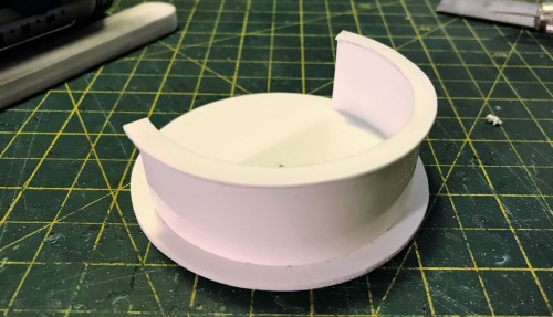 Once the bottom is trimmed, a plasticard part is made and positioned on top in order to rebalance the mantlet.