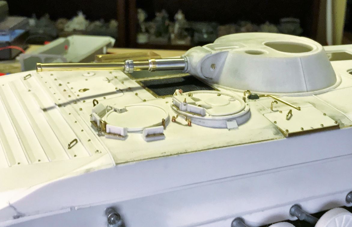 The turret is sanded and prepared. However, I noticed that both turret and mantlet need modifications for accuracy.