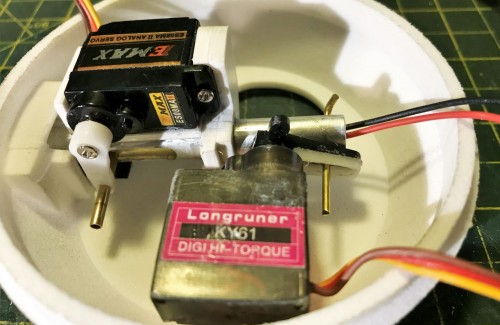 The elevation unit is also quite simple and has a similar arrangement with a brass rod. I connected the servo to receiver channel 6 that is assigned the VRB knob on the remote. I found it easier to use the knob than the TK-22 elevation process using the 2 sticks, the lost sound effect is minimal.