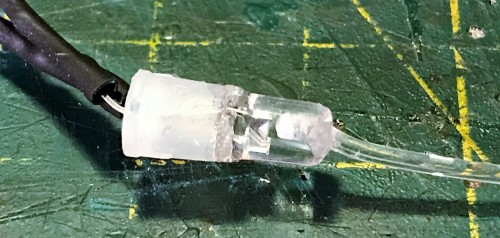 A home made flash unit is created with the fibre optics and a 5mm LED.
