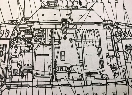 The interior of the BMP-1 needs some serious study. Use of graph is limited by so many small items left and right, lots of pictures must be assembled. Its complicated and in comparison, the M113 and Marder interior were more simple.