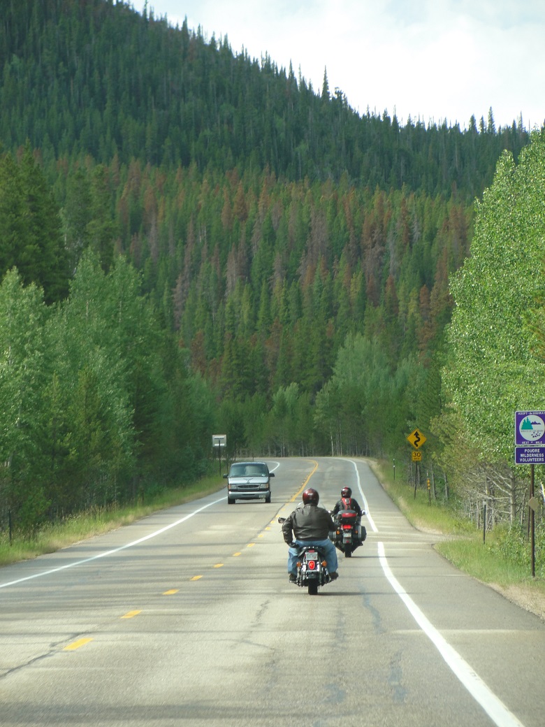 One of the all time biggest regrets in my life is having to give up road riding. After 30+ years of seeing the country on two wheels, I had to sell my Bike and go live a 'quiet' life. It helps with time for modeling and reading and suchlike and stillness is key I hear. Even owning a convertible and making road trips out and about isn't the same. Here is my last road bike in a couple of photos on my last big trip up to Yellowstone. It was my lovely traveling companions first Bike trip out of Colorado. She and her Concours did wonderfully while me on my trusty Drifter made it through in like new shape. ;o)