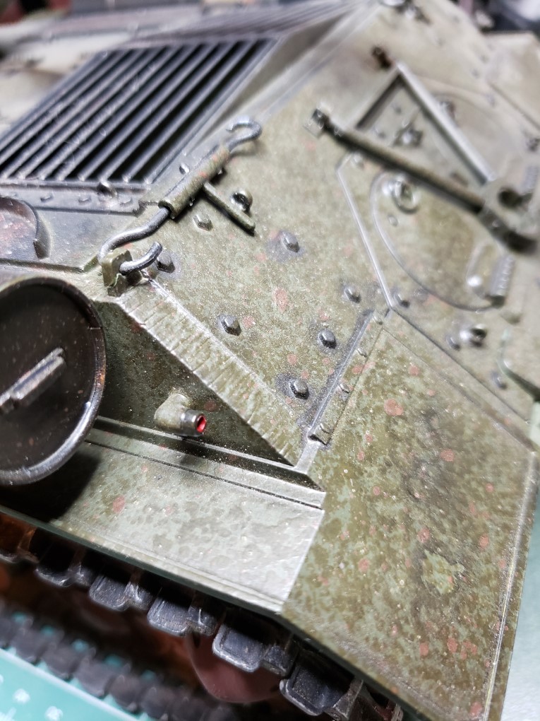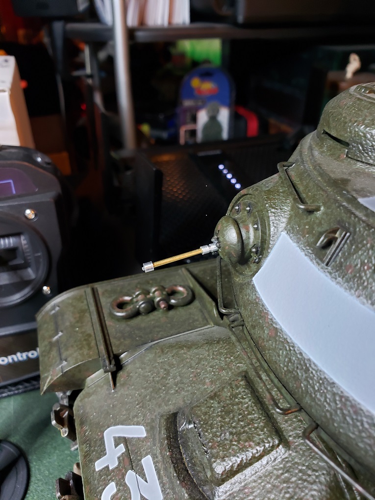 First work on the tank was to repair the broken fibre on the turret mg and install a brass BUG mg.