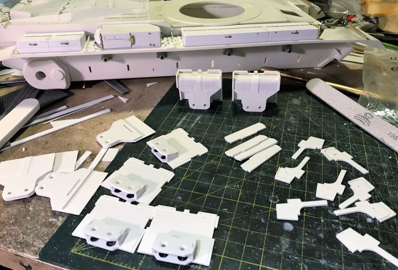 Good base model. I wish I could have used or reused the hull bins you designed for the kit but these are the Mark II and early Mark III with top opening doors. Late Mark III and up have variations of the side opening doors in either 2 or 3 sections, the Israeli ones have the two sections plus a small bin at the rear right. Looking forward for the kit suspension to be started soon.Panzerjaeger66 wrote:wow, you detailing is fantastic!!I wouldn't have the time and skill...