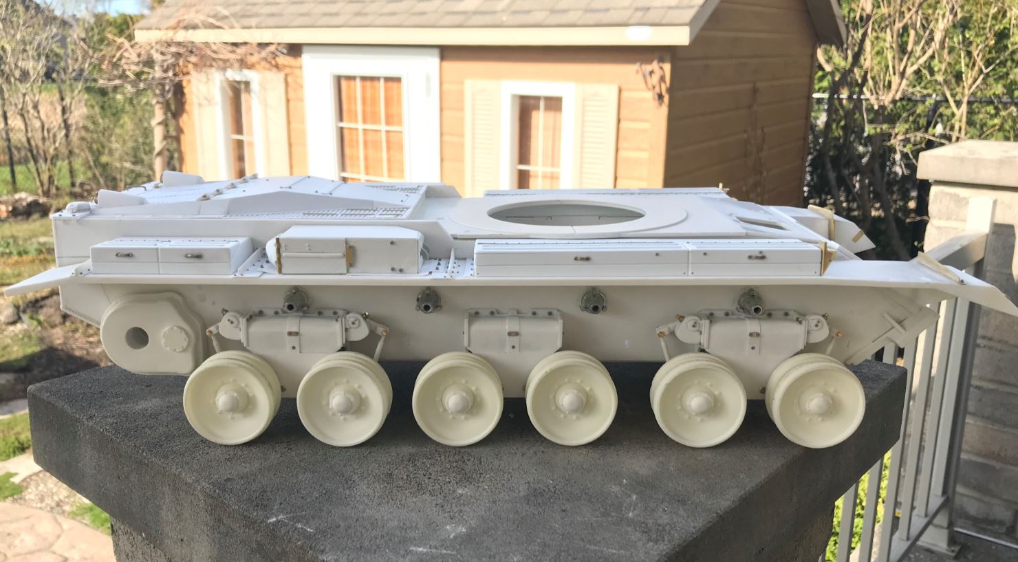 My parts had a defect. The critical plate that covers the front of the suspension were not created equal, a manufacturing issue. Some were as they should be, while others we're thick and devoid of much detail. There were a few spares provided so I was able to make 6 that look ok through scratching, sanding and polishing.