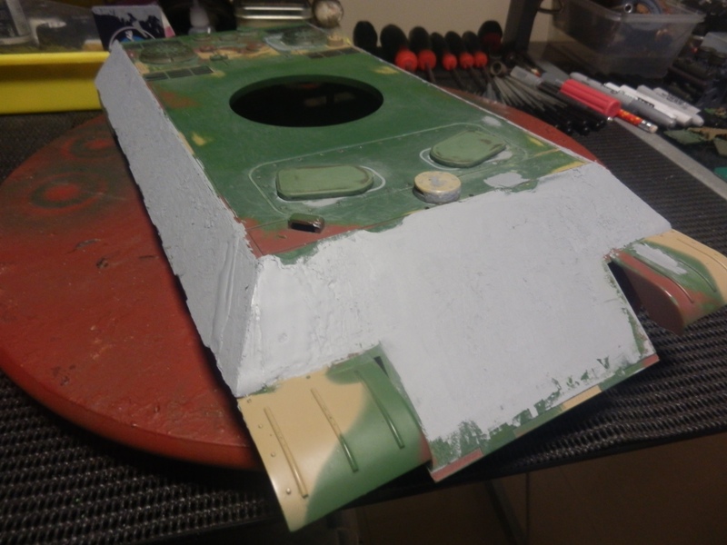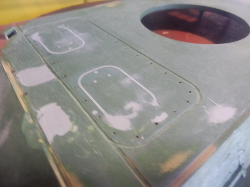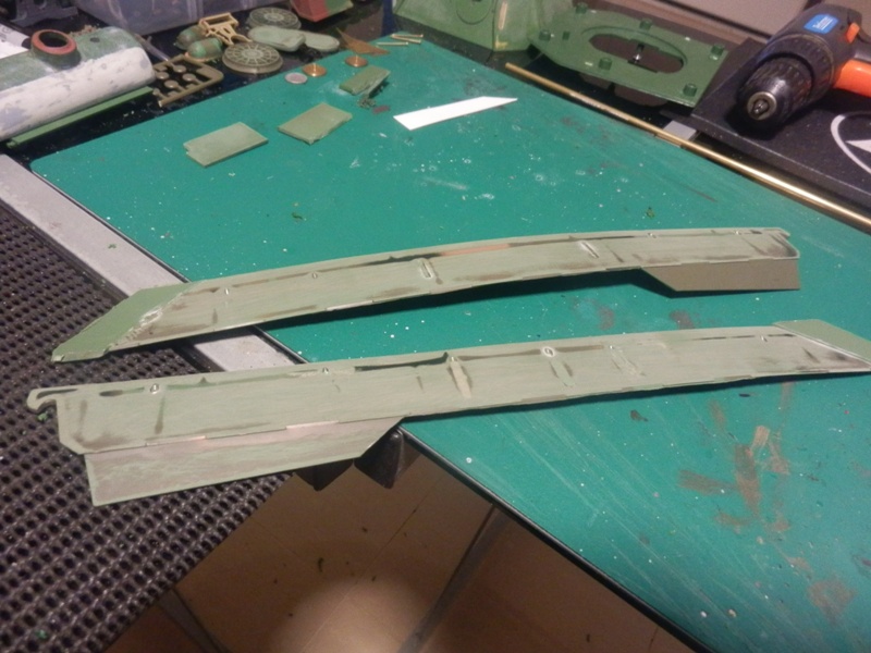 Once I've got the upper hull filled & sanded , I will glue the side panels in place. The vibration of the sander might affect the bond so Im leaning towards caution.