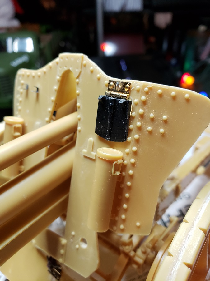 My hands were ready for business again so I undertook some detailing on the gun tonight. I had pored over online pics of the early versions of the field piece and used a few of the ideas that I found. After this, I only have the metal tow point to install. After that, it's Paint Time! Pics: ( Click to Enlarge )