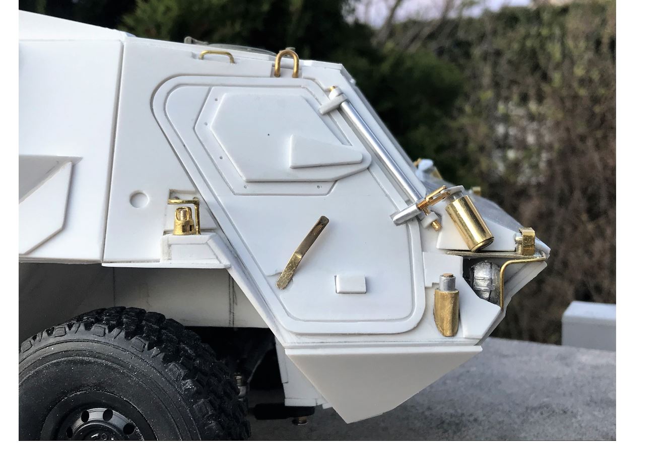 All the extra armor on the cabin have now been made and installed. Remaining to be done are all the attachment points composed of a large washer and bolts in a few strategic places for each plates. These are important for the look.