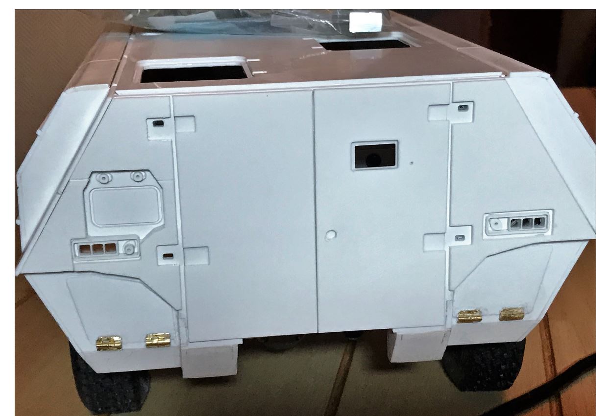 This is the back of the vehicle, simple doors with add-on armor. The lower area has some complexity.