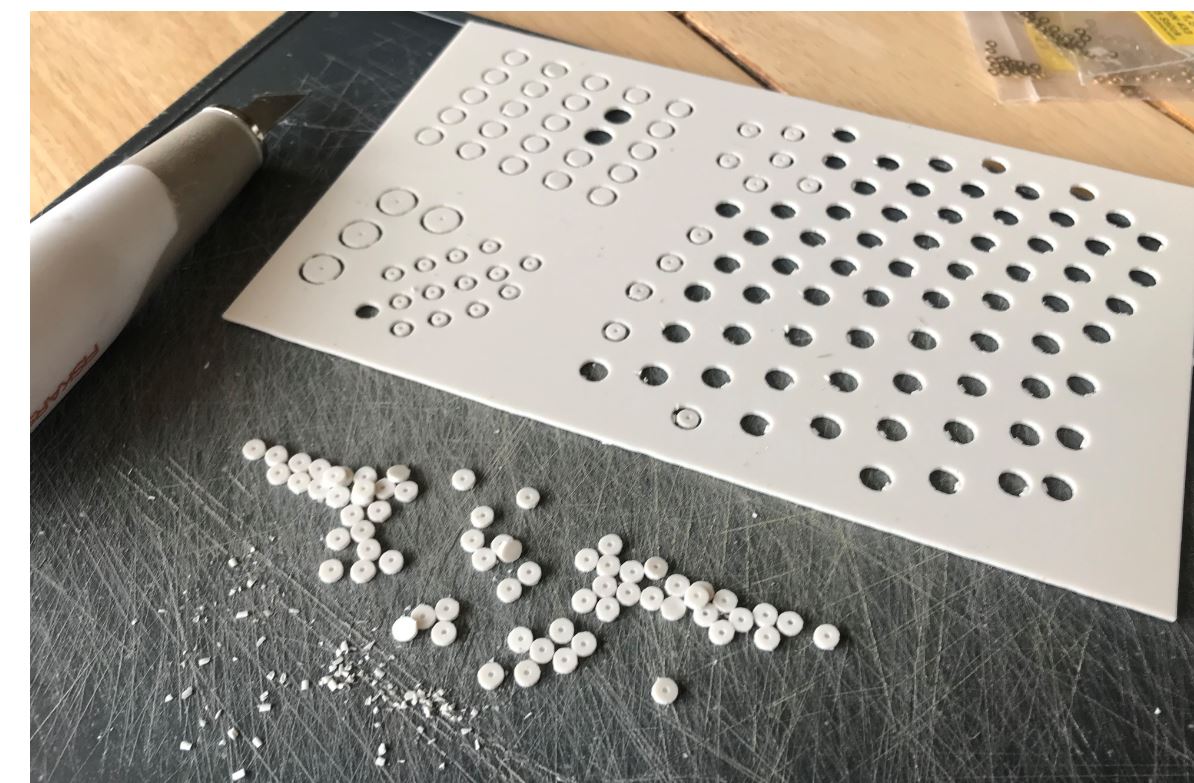 Chris sell a "Detailsatz" sheet for the Boxer kit that I thought could be used to represent the anchor points on the Fuchs. However, after a few trials, I determined the ones available in the required quantity were too large and did not look good. They are also too thick and require too much effort to use. Time for Plan B.