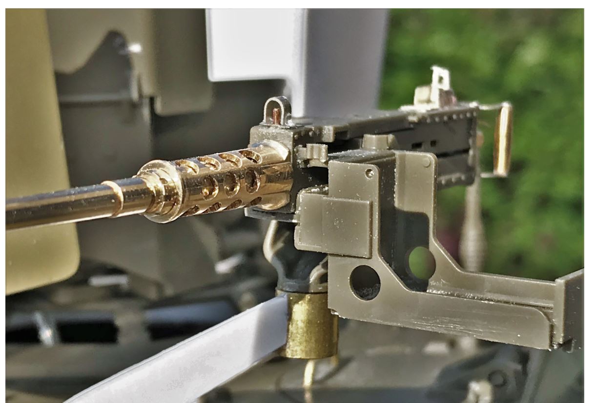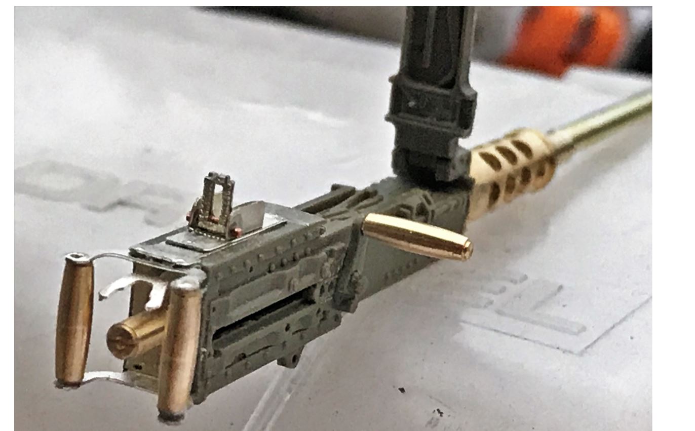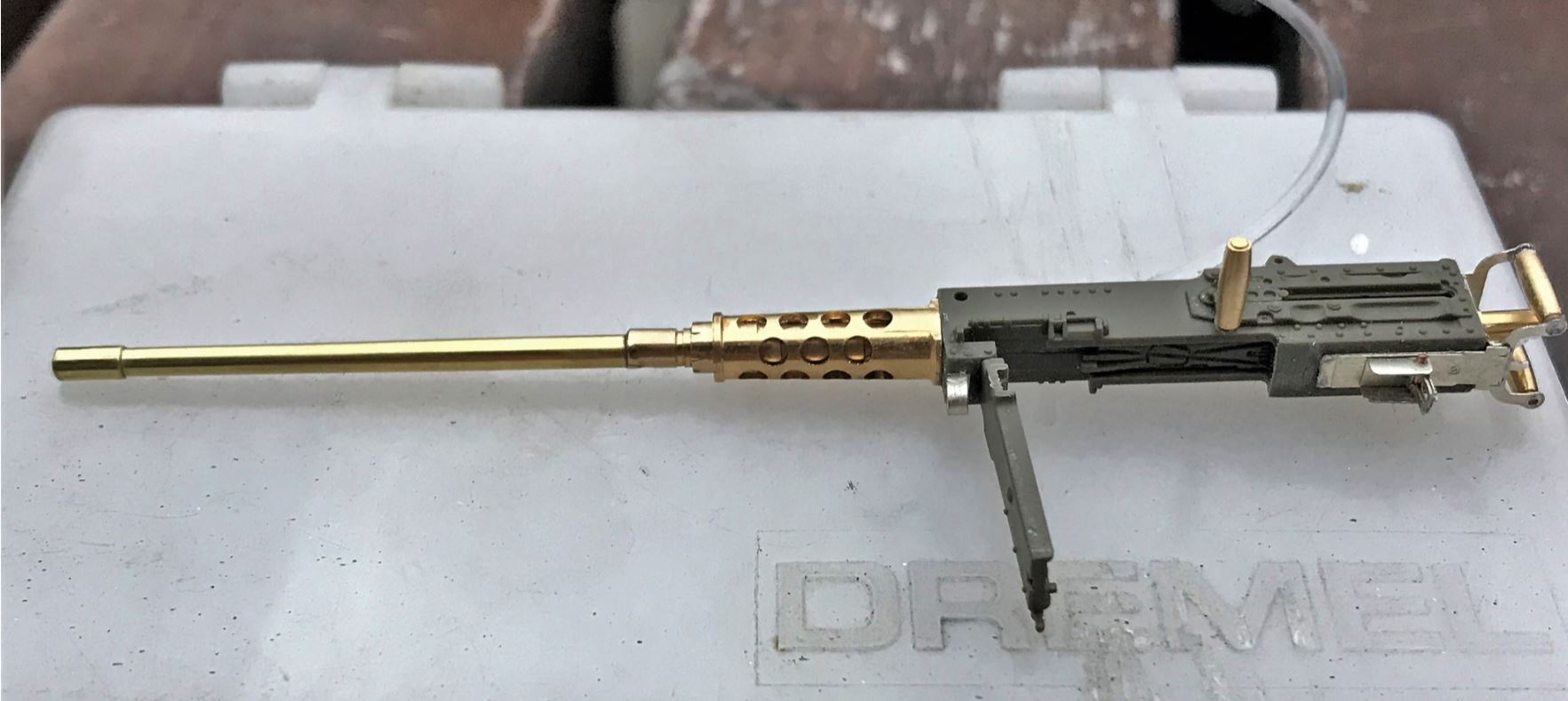 Here we are, a 1/16 scale M2 Machine gun with fibre optic gun flash ready to be installed on its mount.