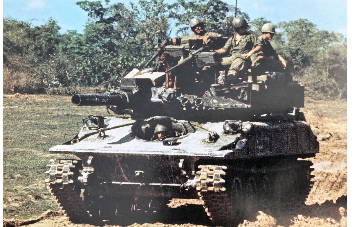Yeah, it does right now but with the addition of the large storage rack, it will rebalance the turret. That's Vietnam. With a 152mm gun with beehive rounds, one 7.62mm coax MG and two .50 M2 MG, the Sheridan must have made a hell of a perimeter defence vehicle.