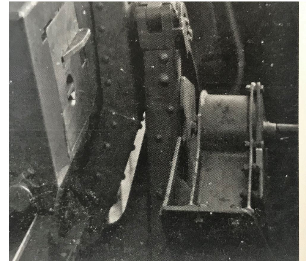 View of the gun elevation hand crank mechanism. On the Hummel, it is mounted on a bracket attached to the gun mount.