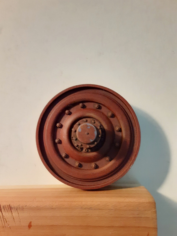 In an earlier chapter, I mentioned the possibility of creating new sets of wheels to imitate the profile of the wheels of the Panther II residing at the Patton Museum. The concern at the time was whether resin wheels would allow for model stability given it's weight. The alternative was to use the very good Tiger II wheels from Taigen and simply use modified resin wheel hubs for a more accurate historical appearance. In the end, a safe compromise I think was reached where a resin facing wheel would be mated to a companion inner metal wheel. It then became a task of creating the correct profile for the unique Panther II road wheels and coming up with measurement tolerances that would allow the resin wheel to mate closely with the companion metal wheel.