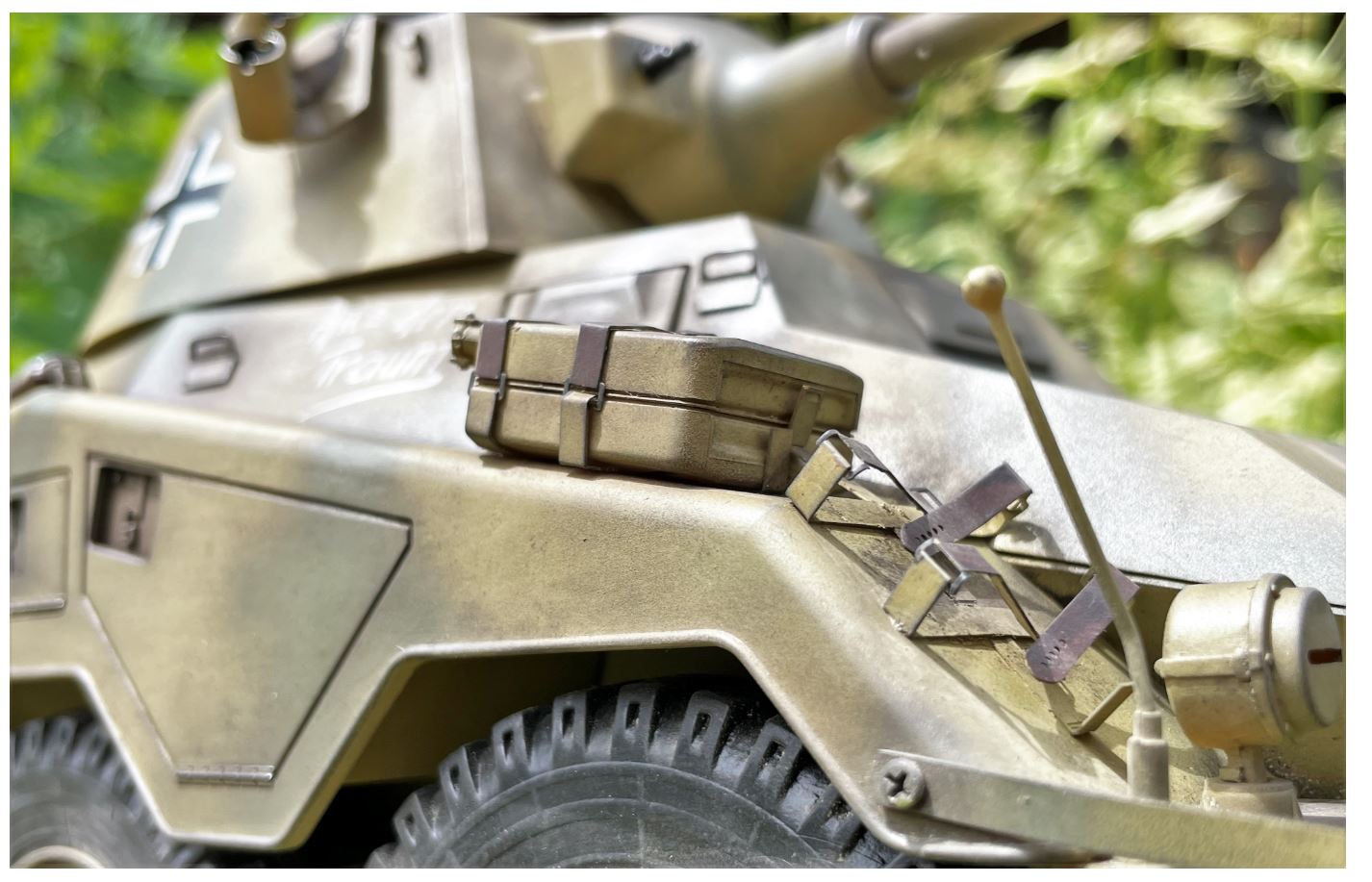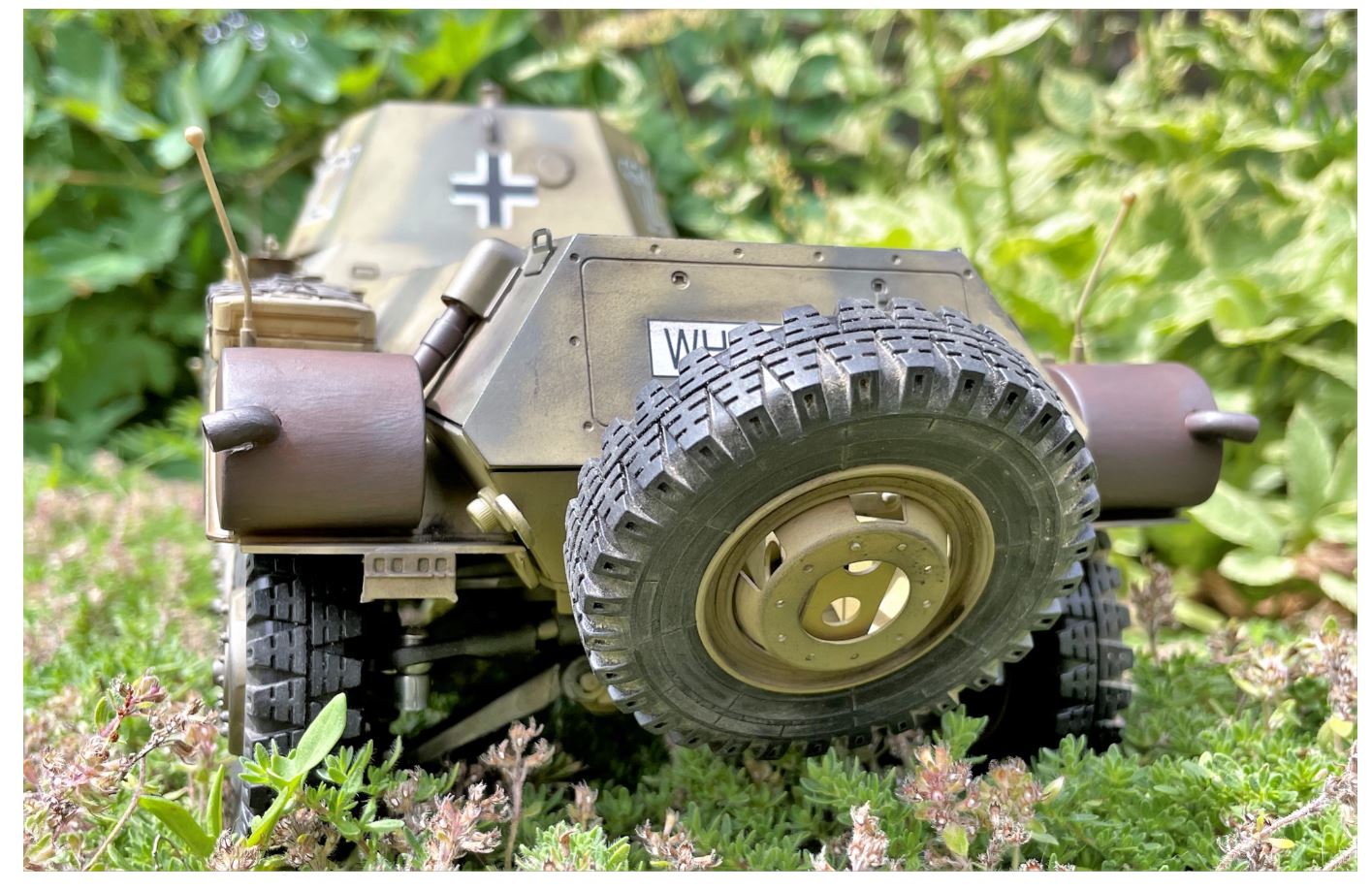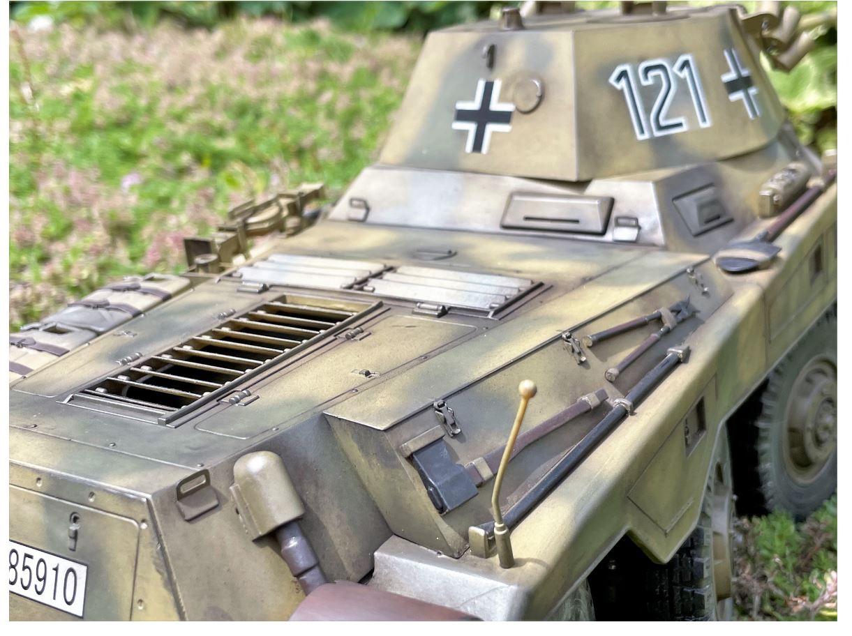 I know many modellers like to apply lots of mud and dirt on their models. I sometimes get comments on my Youtube channel for not applying enough mud and having my models too clean. The finish of a model is a personal preference. I like to use light weathering, first because i do not like to hide details, secondly i am not good at applying mud. I have ruined enough models to know my weathering skill limits so i leave it to others that are better than me at this. In the case of the Puma, it is a wheeled vehicle that would normally operate on roads so it is actually quite realistic to leave it pretty clean. Wartime pictures usually show the Puma in a very clean condition.