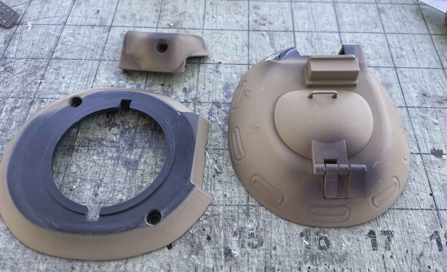 The M19 cupola is cast and a bit rough. You can see below that the cupola is round, but the visors require flat surfaces.