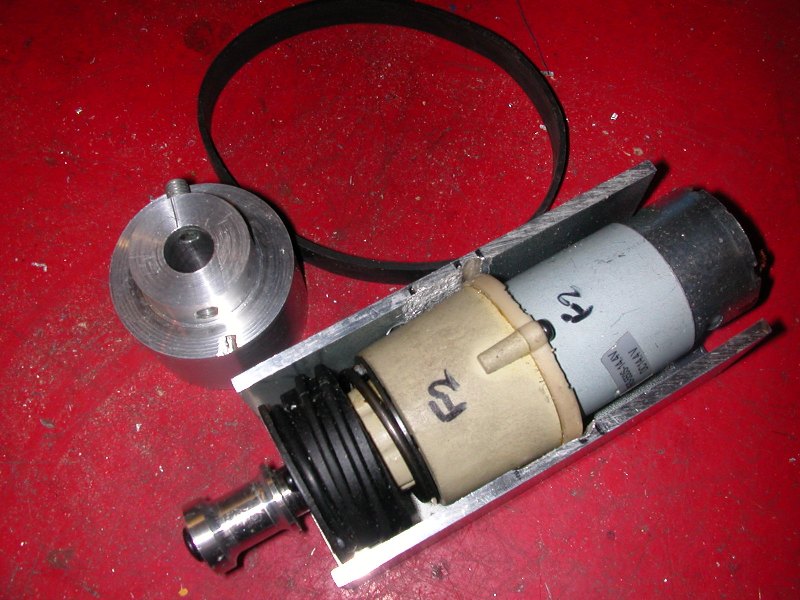 We decided to have a go at sorting out the drive mechanics which we had quietly been avoiding as we had no idea of how to proceed. Firstly we decided to use the same method as a vacuum cleaner drive i.e. a very tight belt on 2 pulleys driven by a smooth shaft on a drill motor.(see photo)
