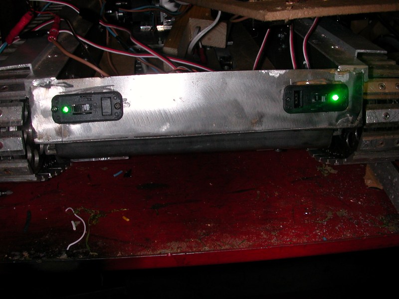 We decided to move onto the dreaded electrics. We didnt have a clue what to do concerning installing electric so back to google to do some research. I soon discovered it was throw a lot of money at it or devise something yourself. We decided that the electrics that came with the cordless power drills worked ok with the drills so lets adapt them for the tank. This was fine with the throttle but if you have ever used a cordless drill the forward / reverse switch is quite hard to operate and a servo would never manage it. Looking for a speed controller that would handle 18v drill motors were super expensive so back to the drawing board. I metered out the reverse switch and realised it was only reversing polarity so we designed a simple method to reverse polarity. It was at this time that I went over to the good old U S A for xmas so left Frank with the drawing to play around. On return Frank had managed to get the tank running using radio control but had only done a very rough job to test the theory. He took me outside and handed me the controls and told me to have a go. 20 seconds later and smoke was streaming from the tank.....AAAARRRGGGHH. He had just bought a brand new radio control, servos and receiver so I was in full panic mode expecting the worst...On inspection it was the drill electrics that had burnt out. I hadnt moved the lever far enough and as you can see from the photos the first rough connections ran very close so I have managed to bridge both + and -