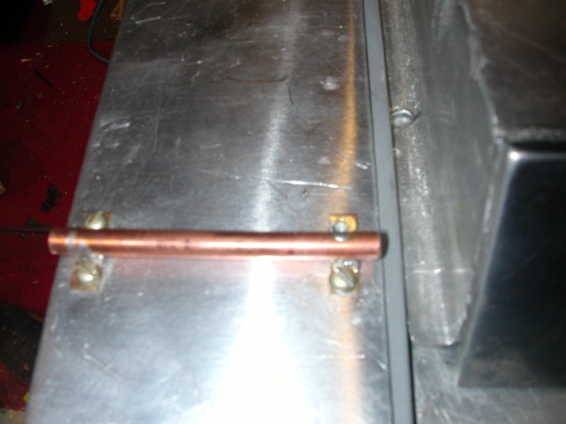 Next we decided to concentrate on the mudguards but just before that we had to incorperate charging and on/off switches. Frank managed to find switches on ebay that were great. You can see how we had to make the holes in the thick steel drilling 1 hole at a time. Painstaking work but had to be done. The bonus is that when the switches are operated they light up so we put the switches in opposite ways to look a little like rear lights. Next we moved onto the mudguards (sure thats not the proper name ! ) It was hard to bend over the ends to form a lip but with steel bars, heating up and plenty of hammering Frank managed to do a pretty good job. He also made the copper parts all by hand using copper piping and soldering brass brackets on each one. I think they look good and it will seem a shame to have to paint them,