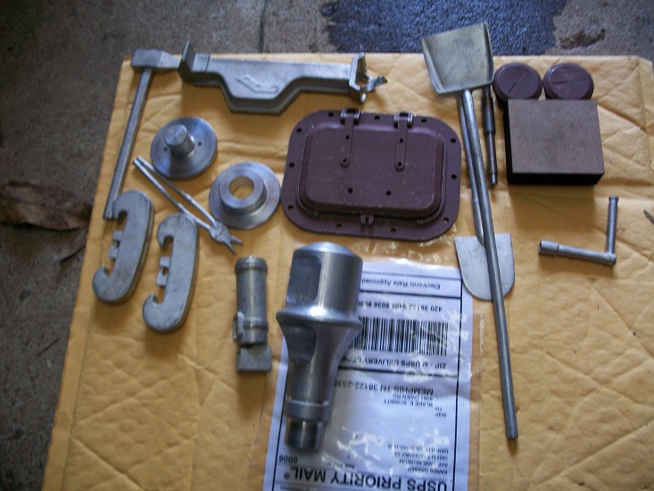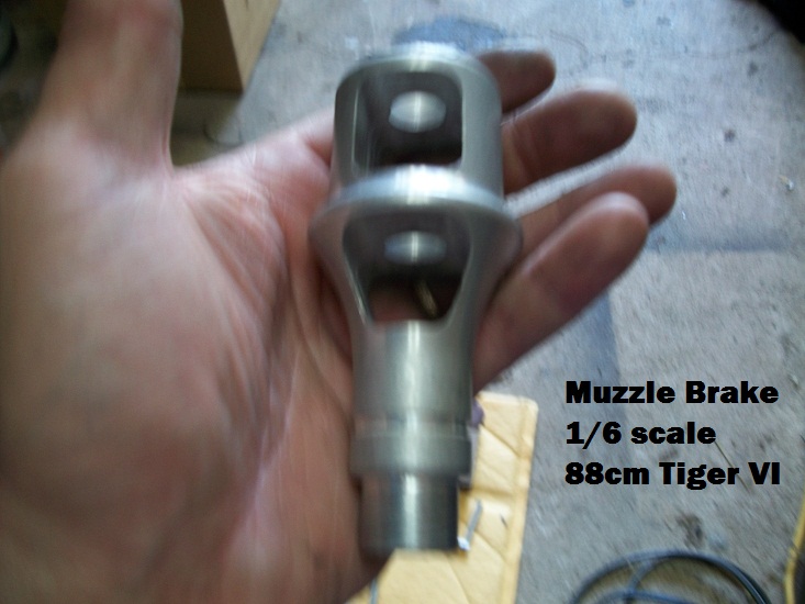 i have been waiting on my Armortek parts and saving to cover the cost of shipping from the UK,but a very fine friend in Hawaii who I shall not name has a 2003 Armortek Tiger Mid Version,he has purchased many upgrades and was kind enough to allow me the spares fromt he original kit that he has replaced with upgrades, Here are a few pictures including a fine Muzzle brake to be fitted on my new Aluminium barrel,which will have the same type of gun recoil system I am building with Dietrich in 2/26 scale but of course in 1/6 scale.