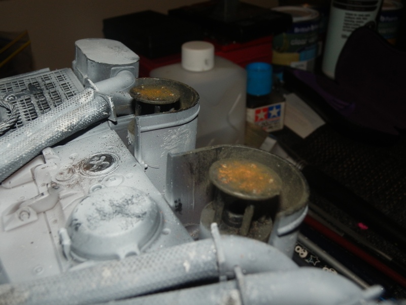 Gin'd around on the exhausts a bit to add character. Bit of Tamiya smoke stain pastel, and a bit of rust on the difuser plates, but not to much.