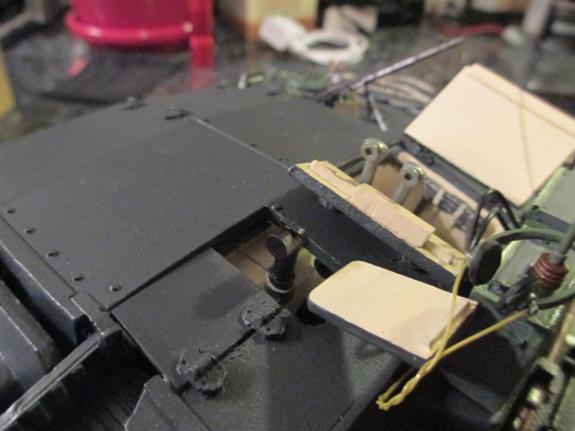 Ed, Thank you, Doc. ;o) Today saw the last of the physical assembly. Figure painting, markings and weathering are all that is left on the list. The Scopes are removable. They use a rare earth magnet and a metal square, both glued into place, to mount. Same kind of thing that we all do to keep our half figures in the hatch ;o) I took the opportunity to touch up paint on the radio and finish painting the inside of the casemate in elfenbein ( what can be seen from the open hatches ;o) Pictures:
