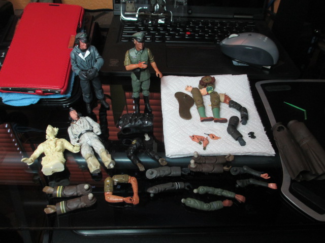 Terry, things are moving and on the way. ;o) Today, I took a few hours and played with my toy soldiers. *chuckles* I took some likely candidates ( among them the bargain I found at the Flea Market ) and sat down to look at some photos and artwork of StuG B crewmen and their uniforms. A little mix and match later, I had a Summer uniform match crewman for the resin Commander and did a little paintwork. I stopped when I discovered that my dark gren was dried up. More work tomorrow. A few pictures of the fun: