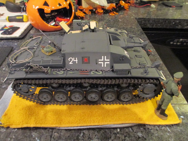 The Commander needs paint and I need to weather the StuG. Otherwise, all done. I'll see to those, hopefully, this evening or tomorrow night. This tracked gun is quite the runner! ;o)