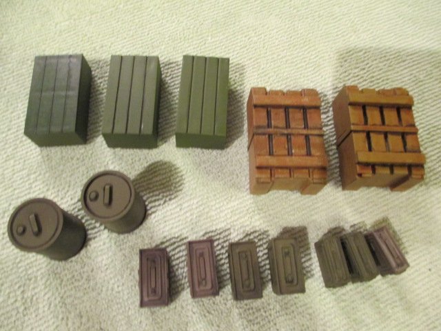 Herman, thank you, Sir. I take credit for the wood effects and the pin wash to define the lids and pieces but the differing shades of O.D. on the ammo cans I owe all to Tamiya and Heng Long. ;o)