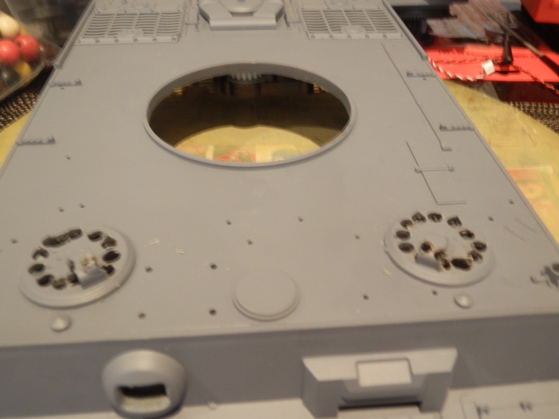 Did a bit of getting around today and finally got back to the project. Set about the MG penetration. Basically gouged out the original assembly & got on a roll when all of a sudden the die grinder grabbed & took a chunk out of the corner of the MG shroud.