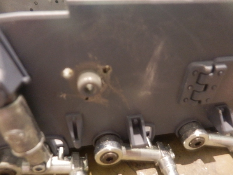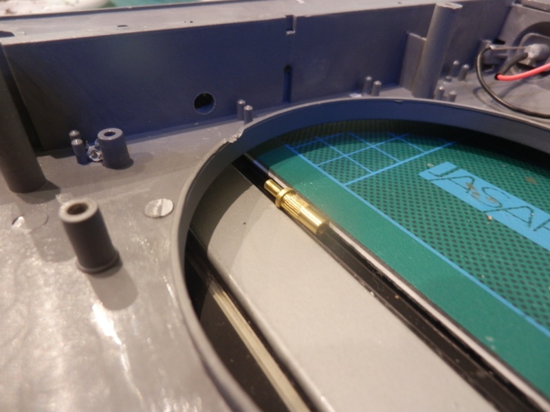 Also began the relocating of the folding aerial. Used the standard base, removed from the evil clutches of the factory glue fiend and drilled out the inside of the hull to accept it. Heated the end up with me trusty Jamie Oliver kitchen butane burner & pressed it in. Once cool, pushed it back out again.
