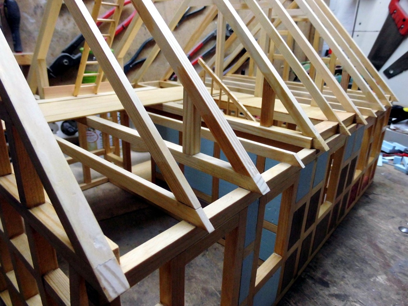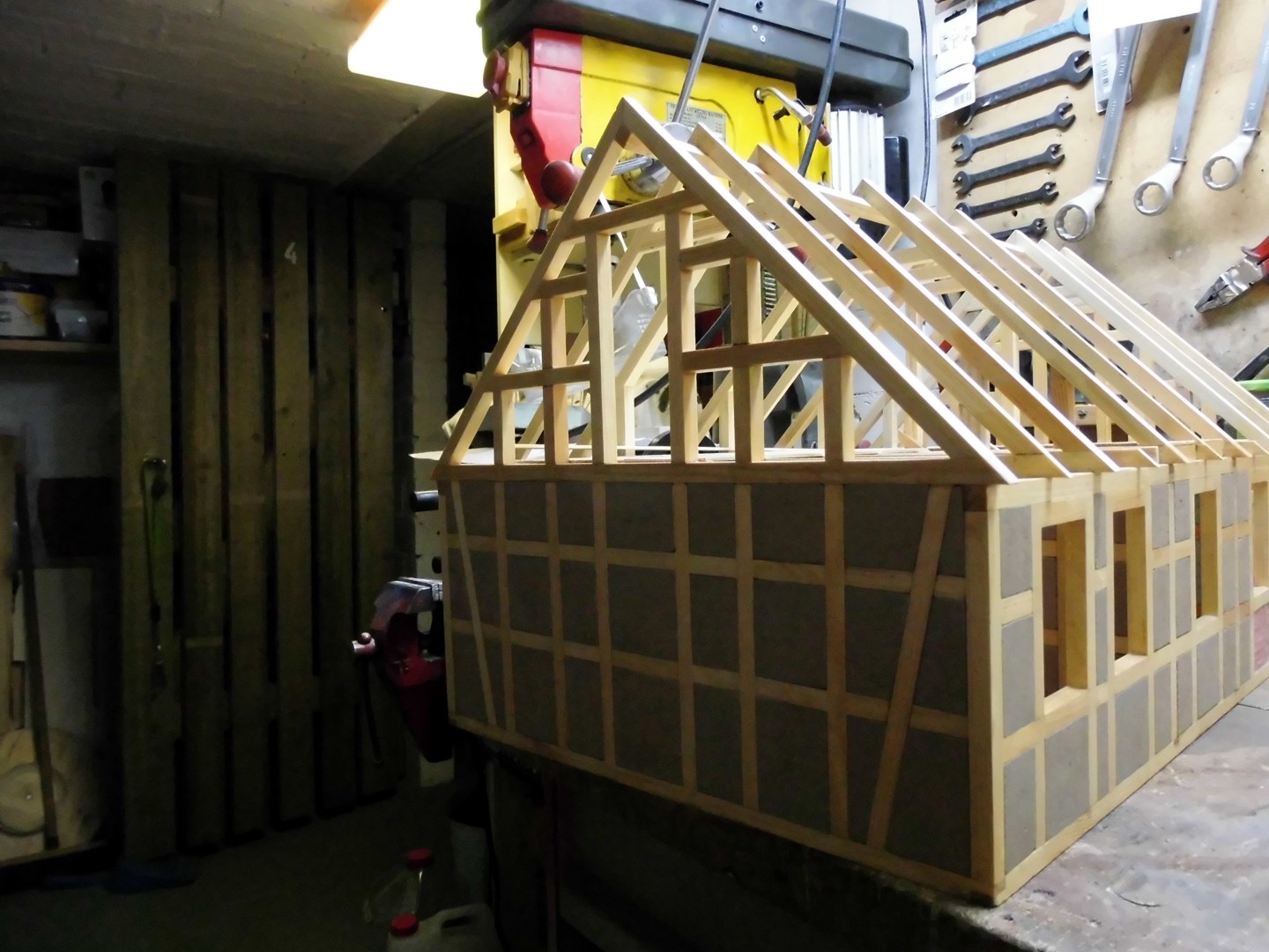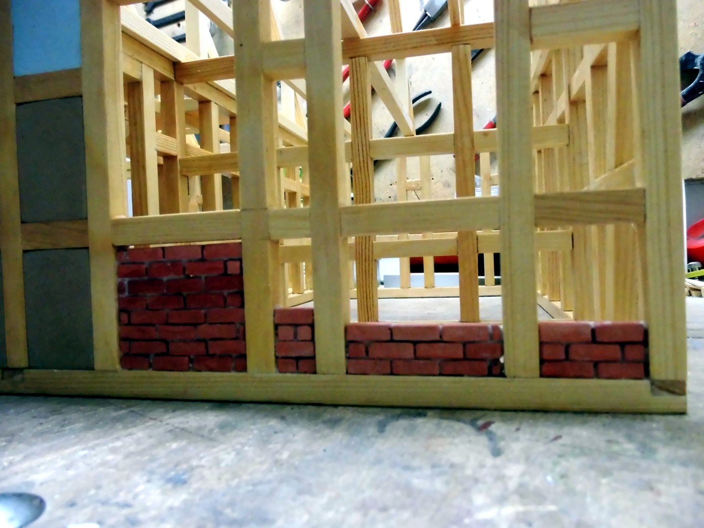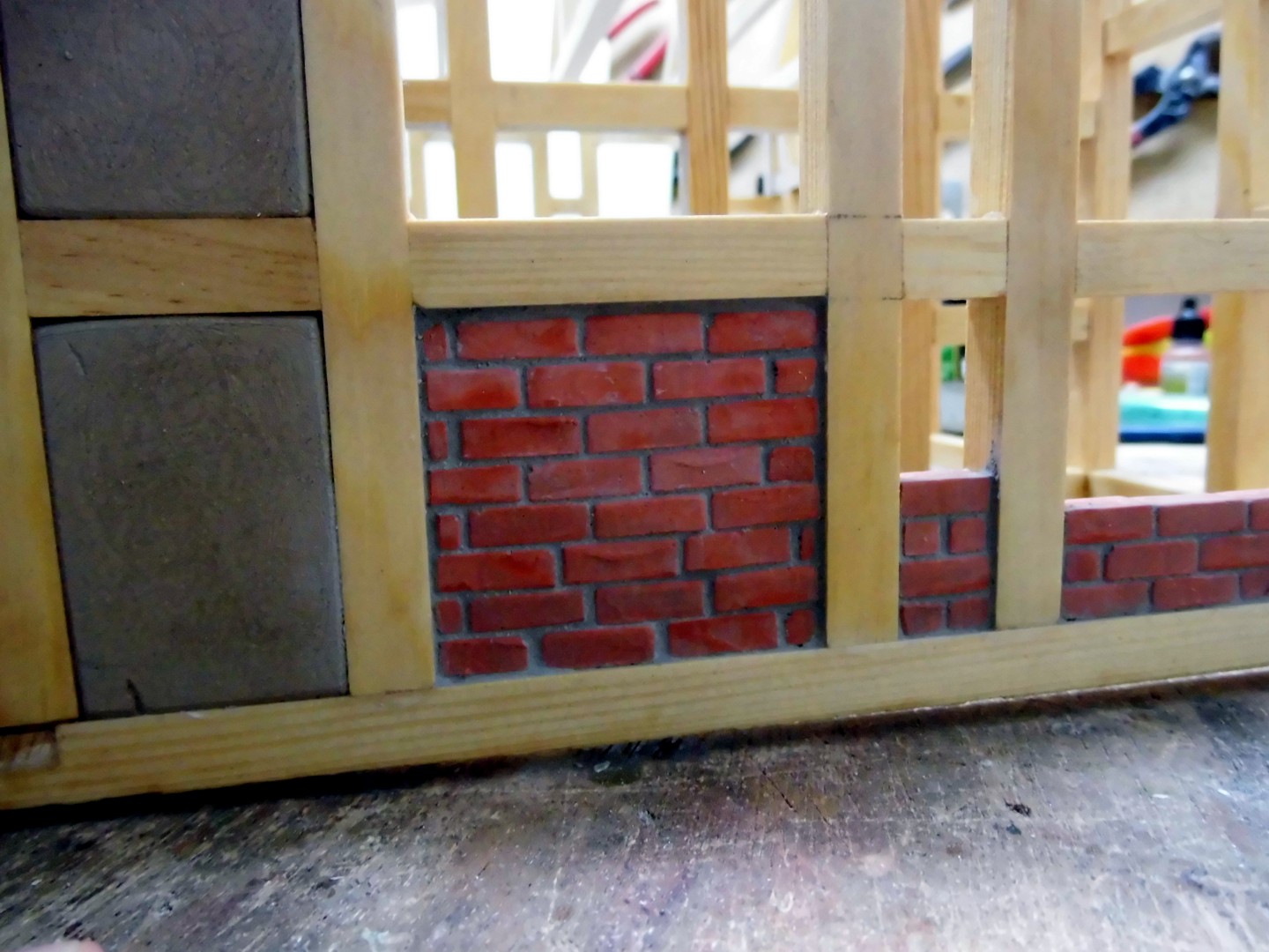 With this wall type I'll fill about half of the timberings, but as still in progress, there will be a few timberings with "unplastered brick walls" and of course some still open. This then later.