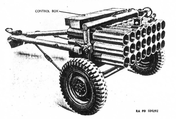 It's all just passing thoughts ..the rockets I seen was M23 T66anT66e 4.5mm.24tubes Nick name' whiz-bang' or " honeycomb" ..but. A 105mm. Howitzer is my best choice .regards Ray..