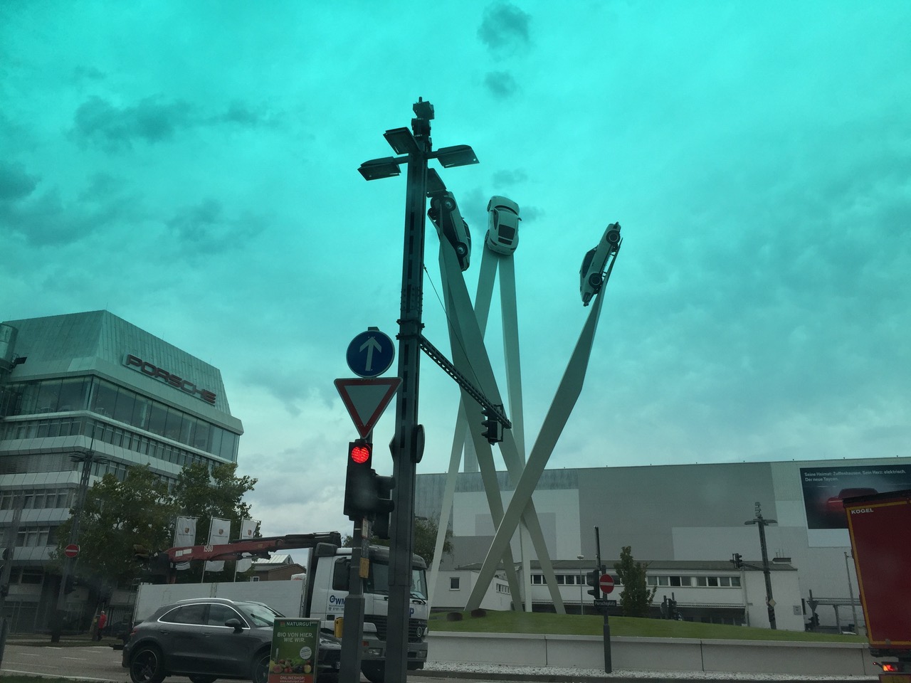 As a by the by, when my son and I went to the Porsche Museum in Stuttgart, shortly after the visit up north to the hallowed Tank-turf of the Munster Panzer Museum, we saw this at the entrance: