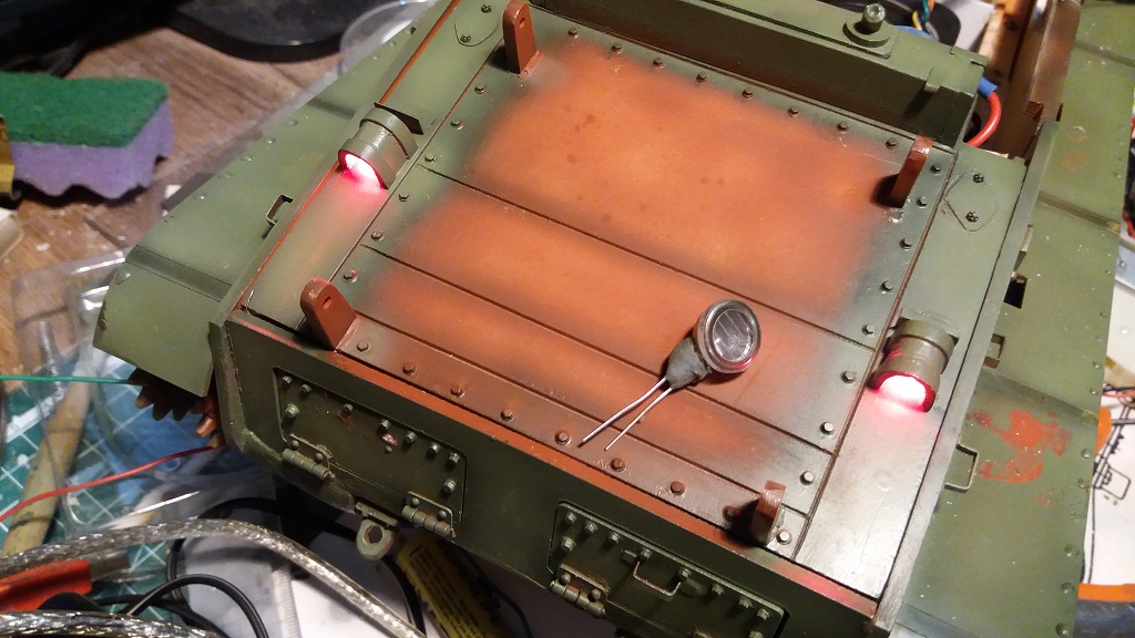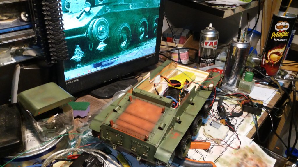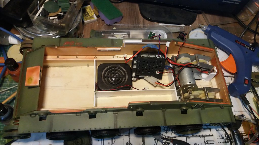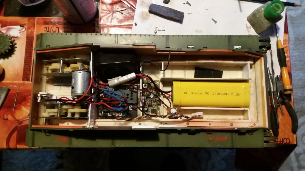Electronics and engines were taken from model by H?ng Long. The switch of power has transferred under the hatch.