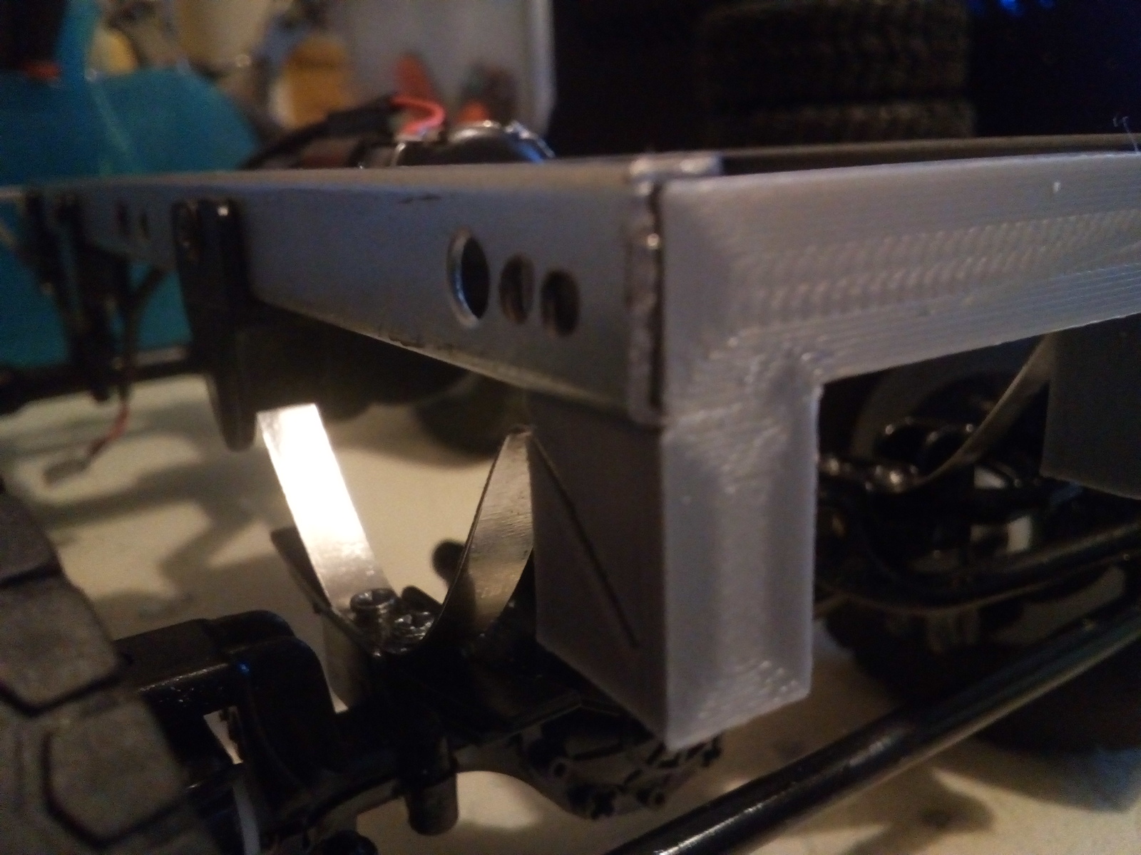 Problem to solve? The nose of the Quad is narrower than the chassis rails. I also have an issue with the HL suspension mounts, they are right on the limit of the rails and foul the bottom of the radiator. Will see what I can do to redesign the chassis and suspension mounts, so that it all fits. The front axle really needs to go forward a few mm just to add to what needs to be done.