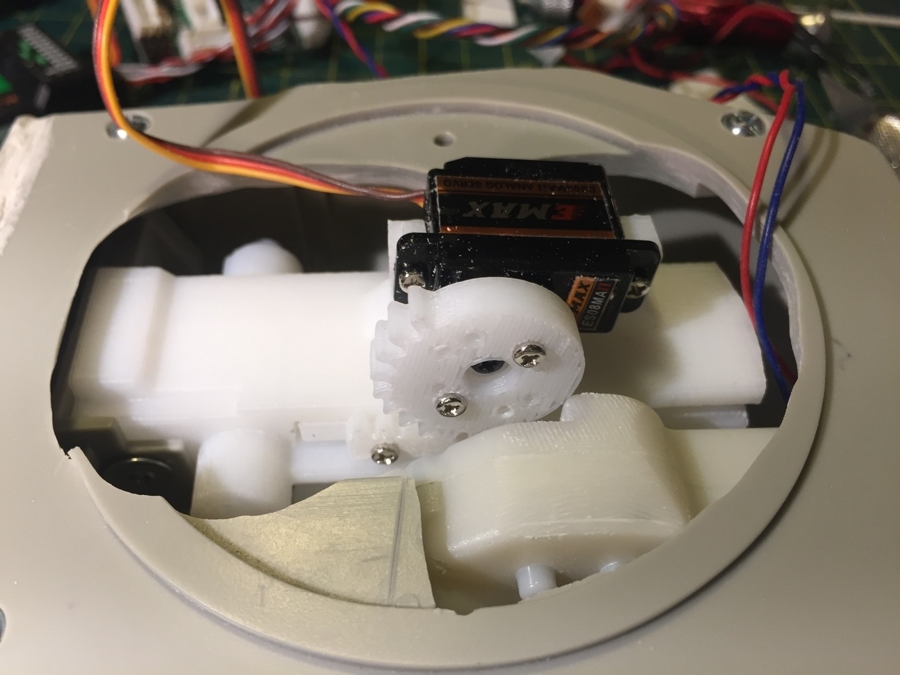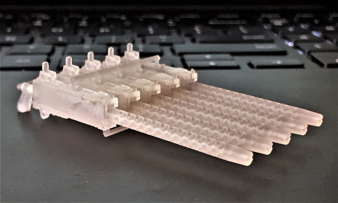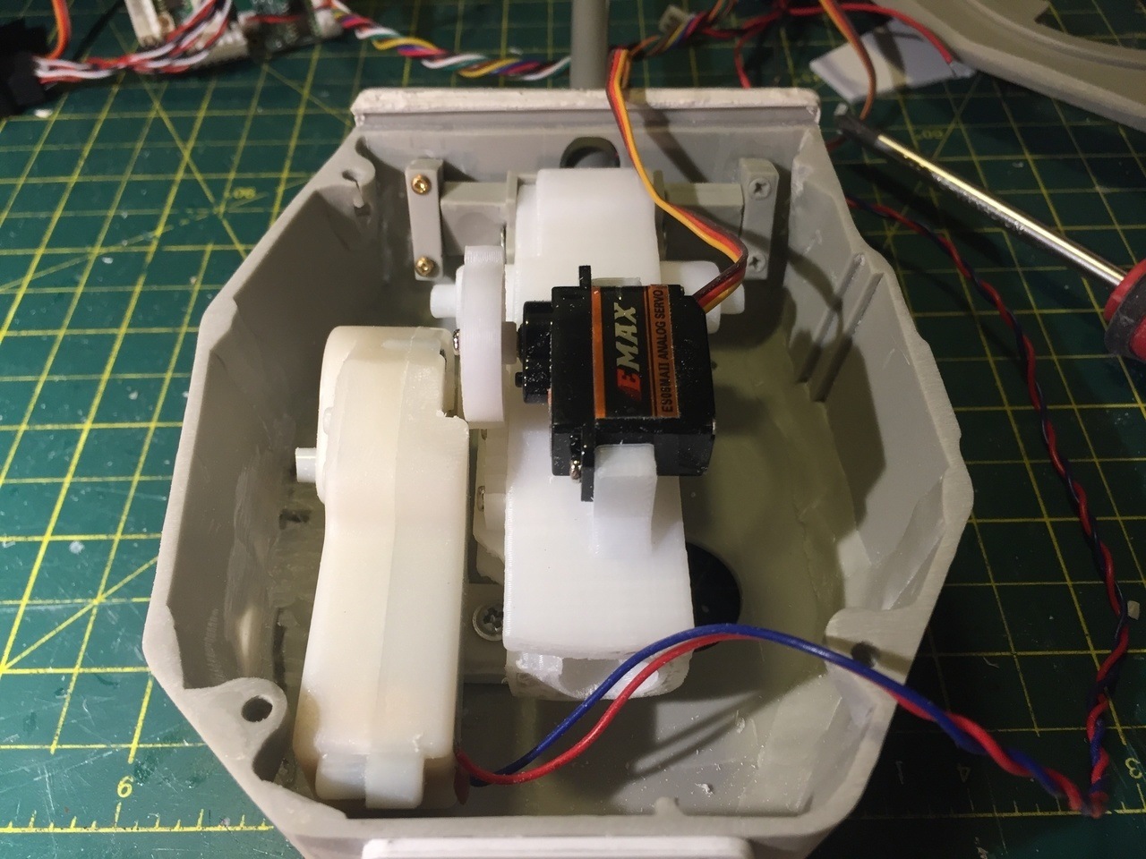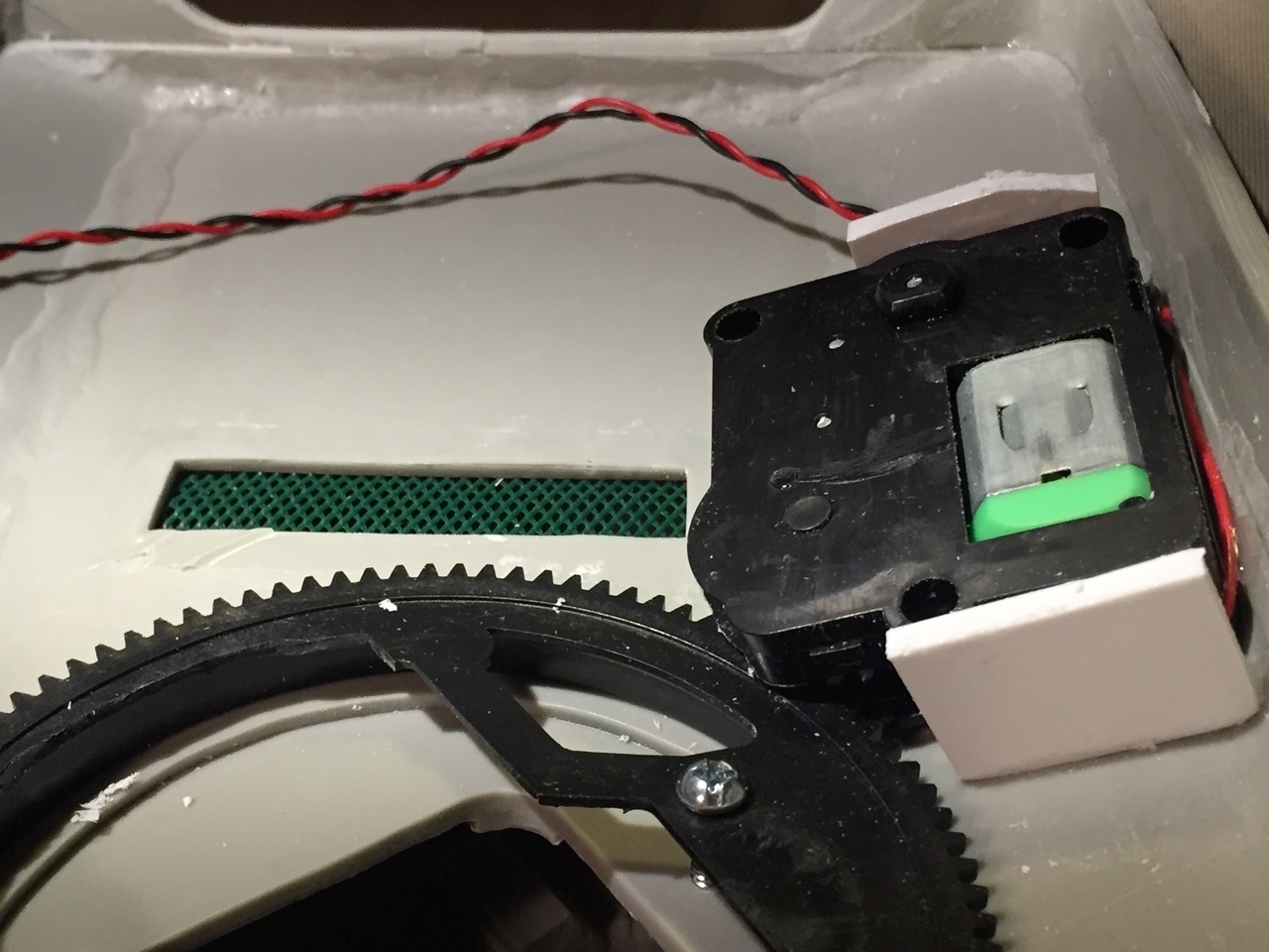 The spring housings were cut with a metal saw (not the blade) and will then be sanded up to the middle of the small hole that you above, a significant reduction. Notice also that the center of the Shapeways part was made hollowed using a small Dremel drum sander.