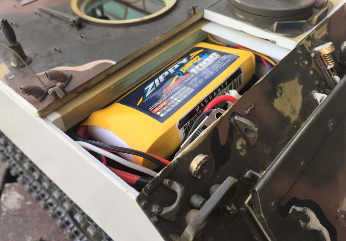 A Zippy 1000 battery is what can fit with the remaining space. I know many modeller like to place their electronics in very sharp and ordered manners, this is not the case here. This build is all about using the available space allocated on the real M113 engine area and free the space for the interior detailing and viewing.