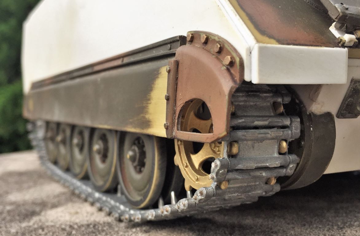 The Verlinden skirts are very nice and can be used but should not be glued. They need to be made removable in order to service the tracks and wheels.