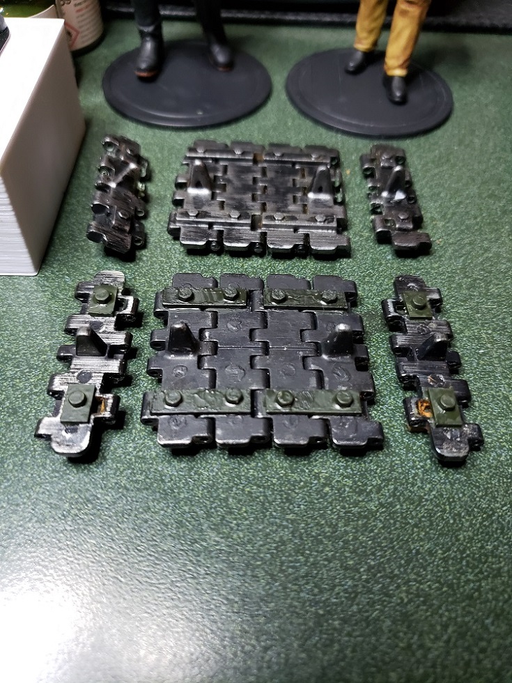 Here are a few evenings worth of compiled work. The pics mainly concern lower hull 'fun' regarding replacing the plastic tracks with a more realistic metal link and pin set and installing the _tiny_ lenses for the marker lights on the deck. ( also a couple of shots showing lens placement in the periscopes are included ) Pics: ( Click to Enlarge )
