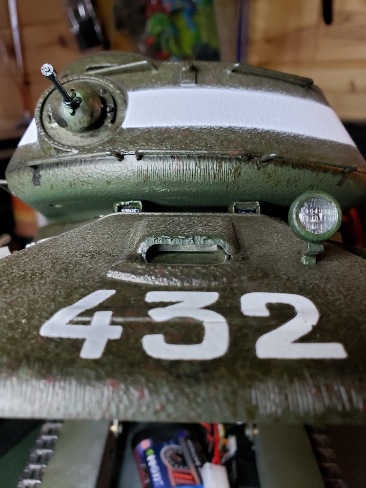 The Battery pack is a good idea if I can locate one at a minimum of 3000MaH. ( This tank is a weighty Beast ) I did remove the feet on the bottom of the smoker ( carefully as the stock smokers are finicky as all get out ) and it helped a bit. I'm working with Maxx from Norway to see about a possible F5 speaker box that will match the size of the Taigen stock speaker. The KV-1 bow MG is made by BUG and is available from Dom at RCTank.de as noted by Wardog. Just use the long barrel portion and set the bottom brace aside and use a longer piece of fibre optic. The ball mount will need a slight drill out for the barrel to install but it is worth it. Much better looking turret ball MG results. The bow MG on this tank had no external barrel so I just shortened the piece of fibre optic that lights up and it is satisfactory.