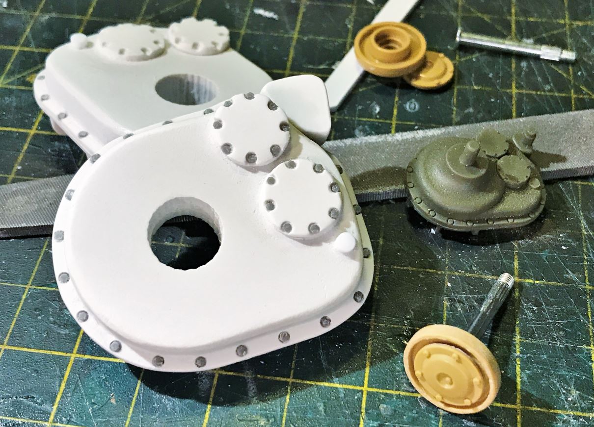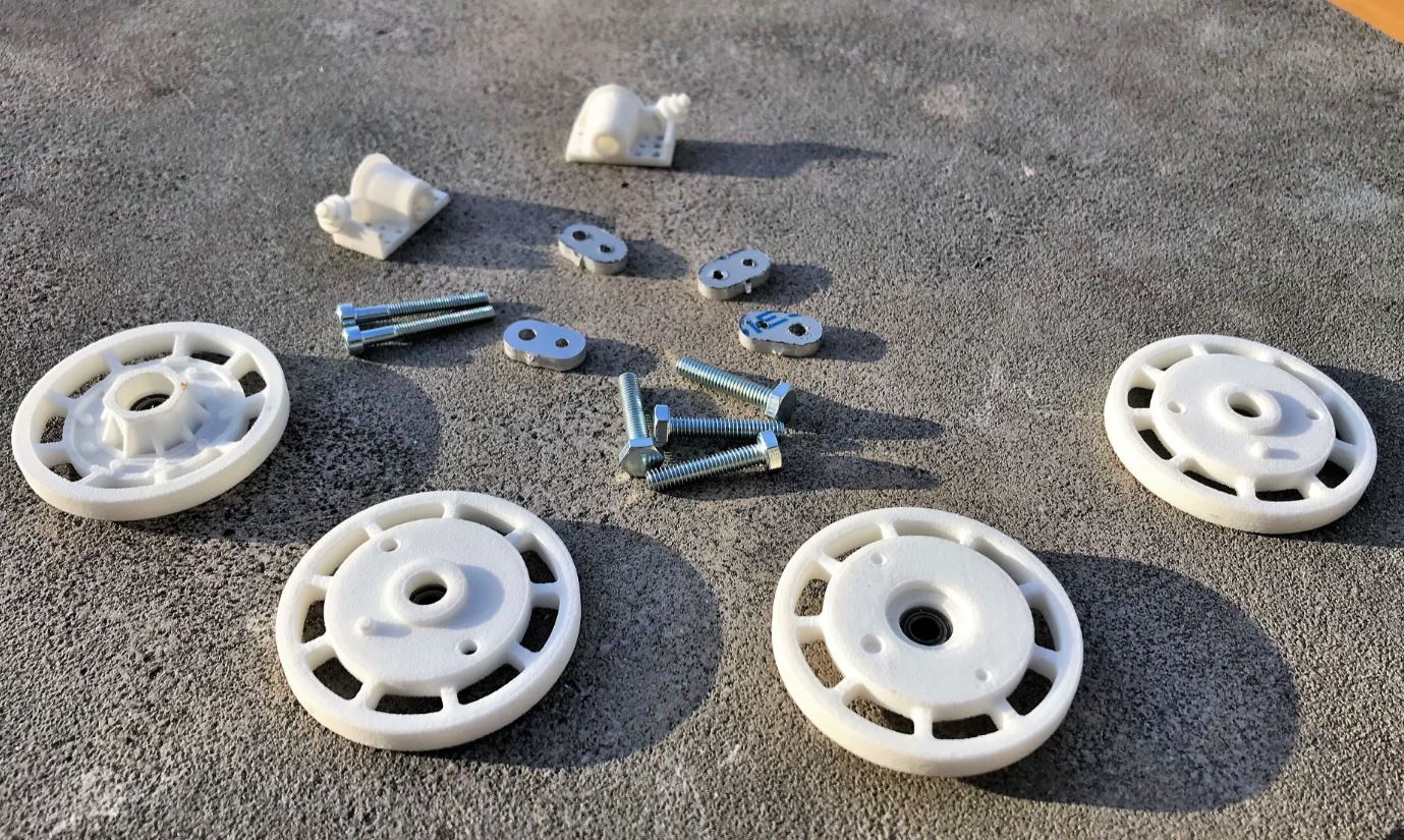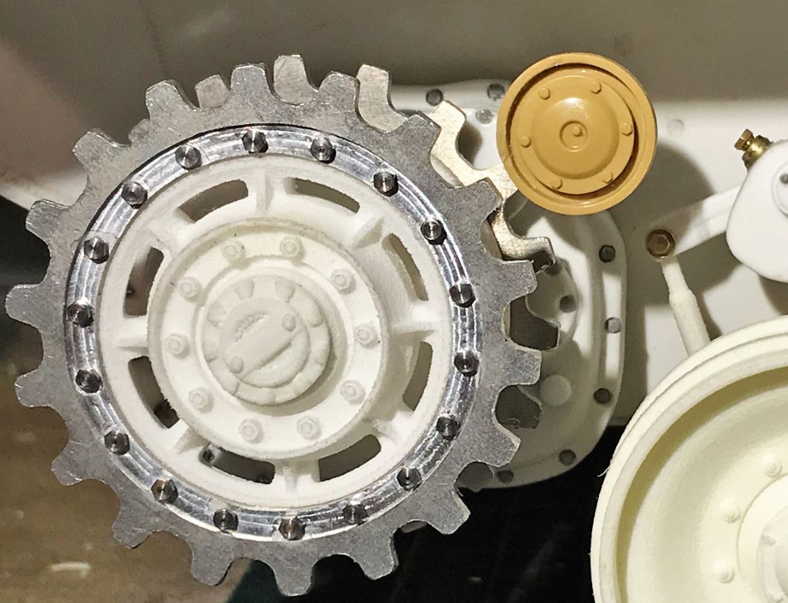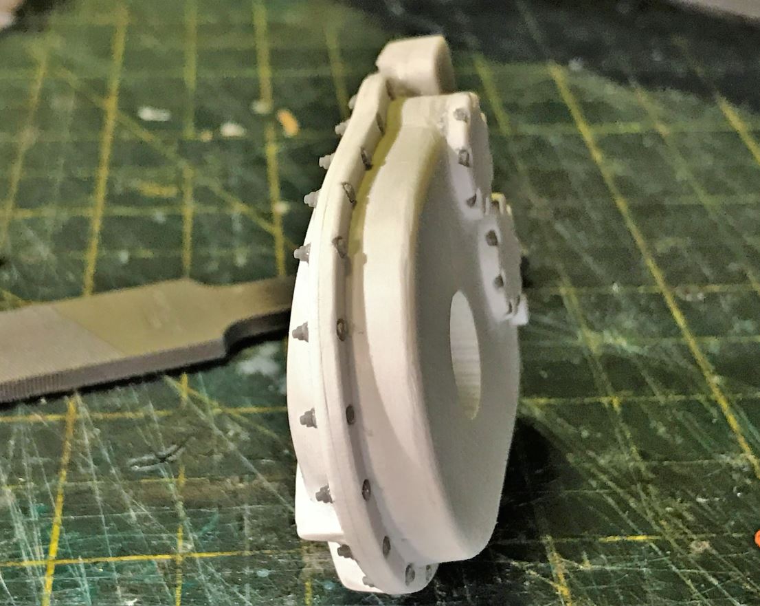 These are the parts provided with the basic kit for the idler adjuster and wheels. I am happy to see that the body of the adjuster is a fairly accurate and well designed 3D printed part that will require only some extra detailing to look really good.