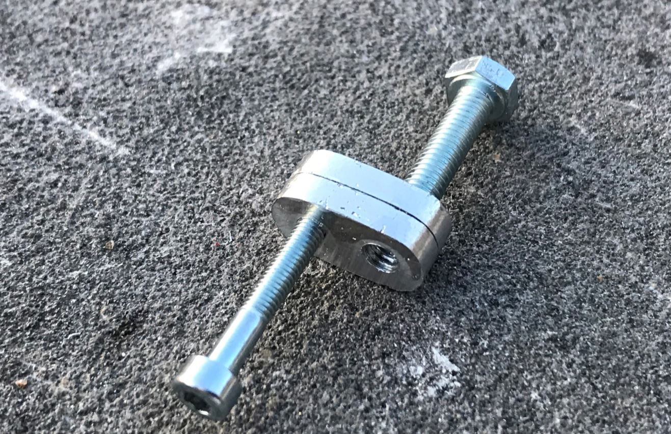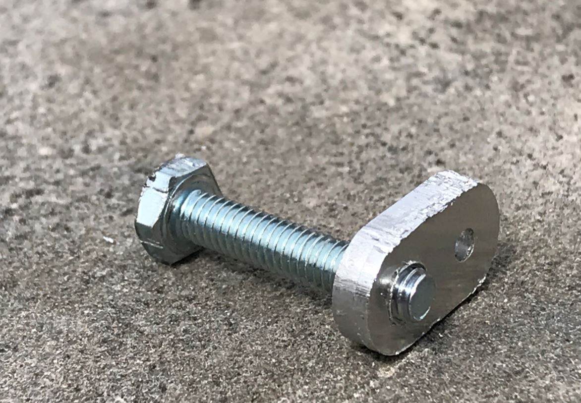 The adjustable axel arm is made of aluminum, so I was able to do it the hard way by slowly screwing the metal bolt into the aluminum hole and making the threads as I go in, being careful not to force too much and break the bolt. I backed out to remove aluminum material with a bit when required, then continue until I am through.