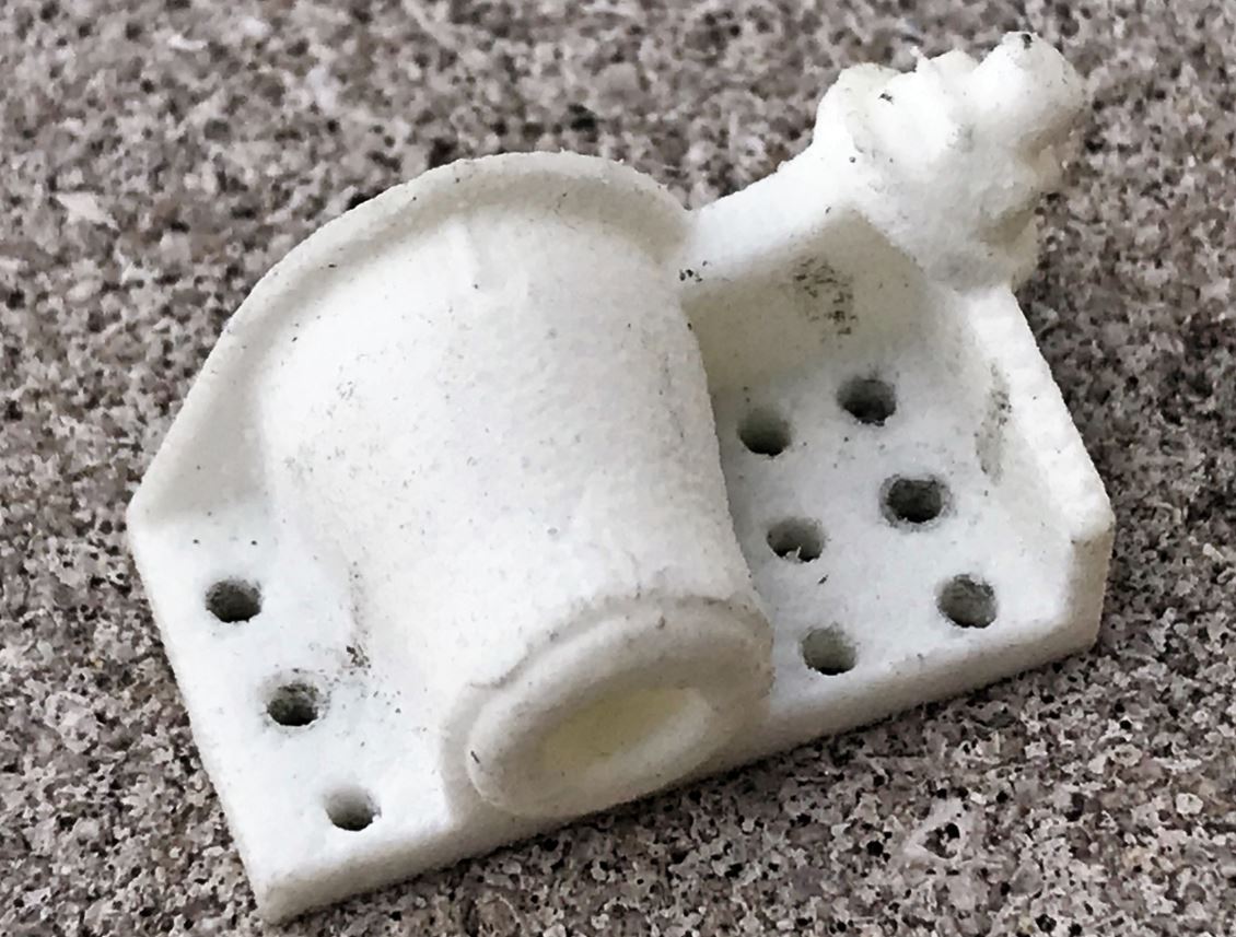 Close up of the 3D printed Idler adjuster body. I was pleased to see that it can be installed on the Centurion with real metal bolts. I have calculated that M1.4 X 10 metal bolts with nuts and washers provide the best option. The part can also be easily improved with some more details.