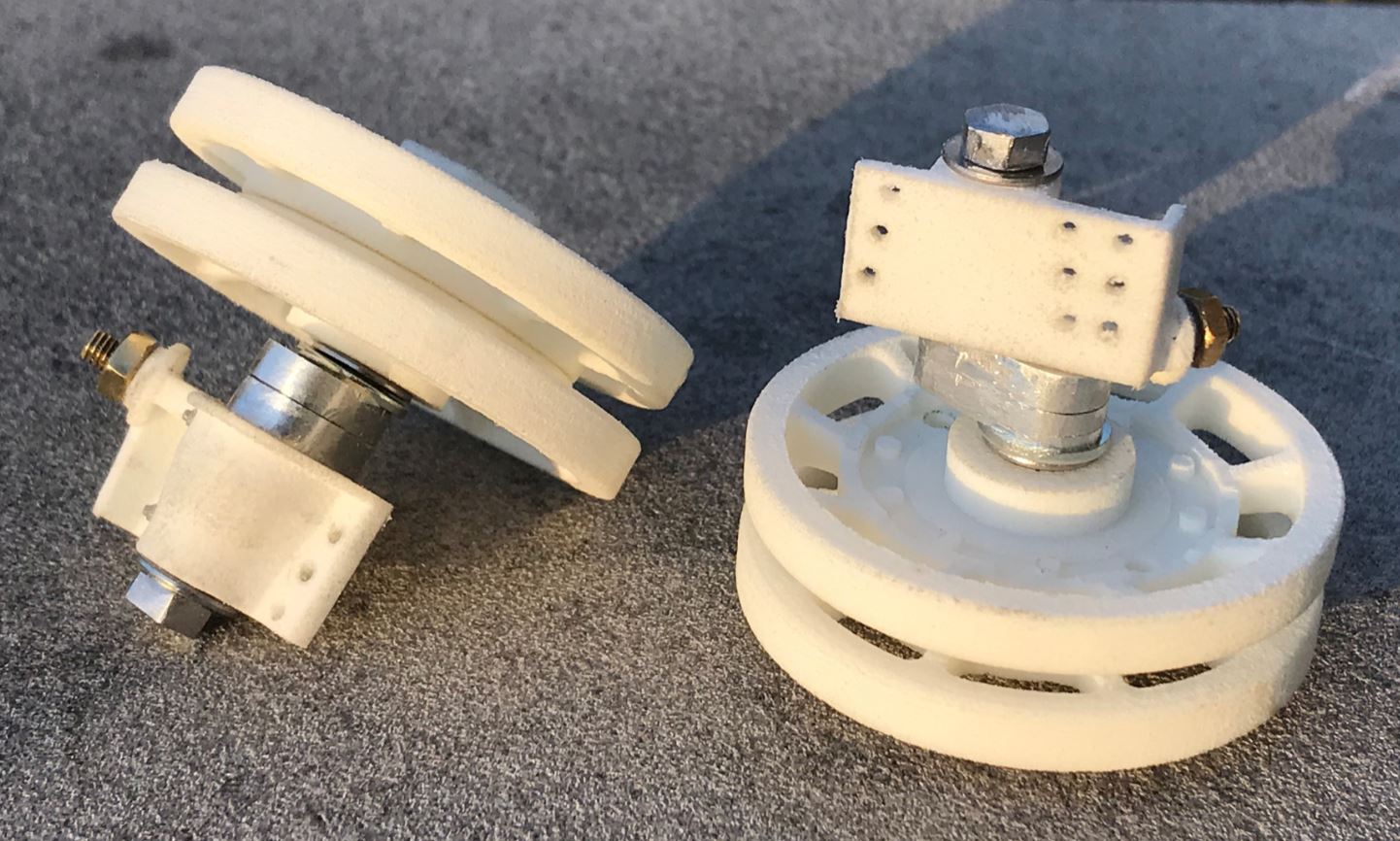 The finished idler on the right compared to the original part. I have replaced some 3D printed material with metal components that provide more precision and accuracy.