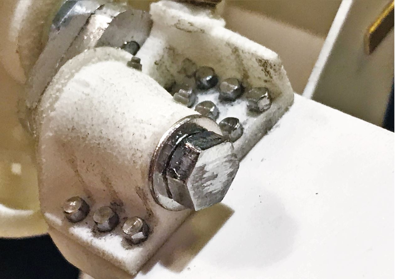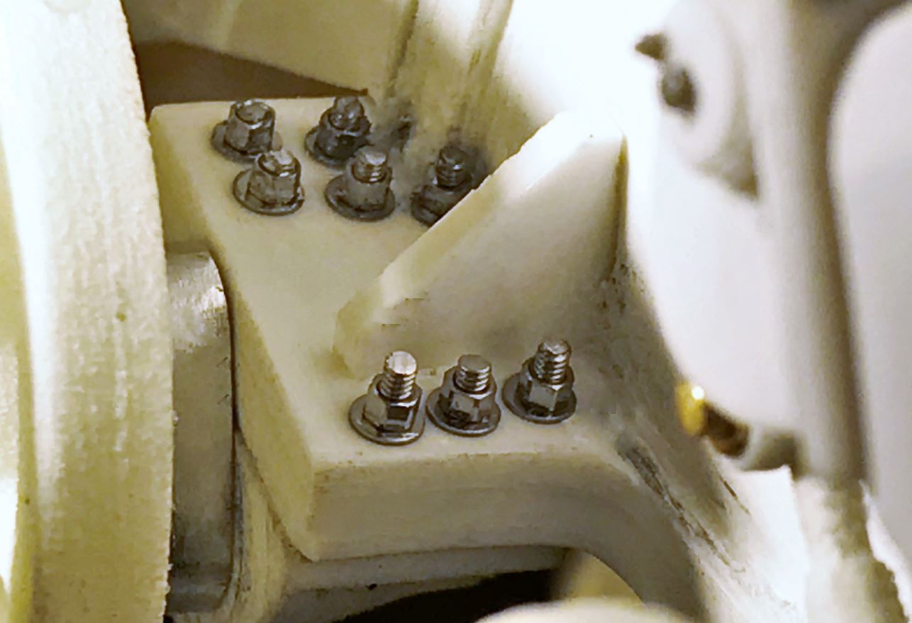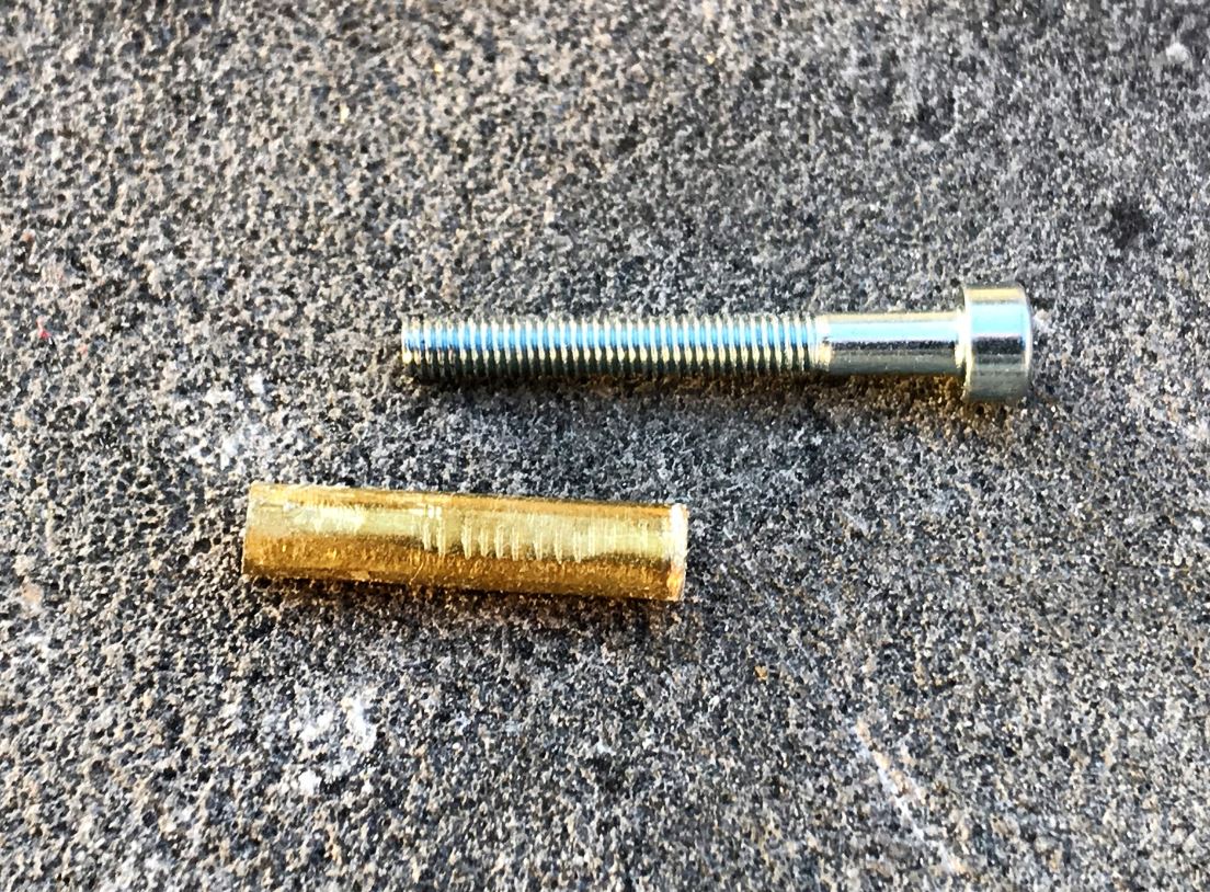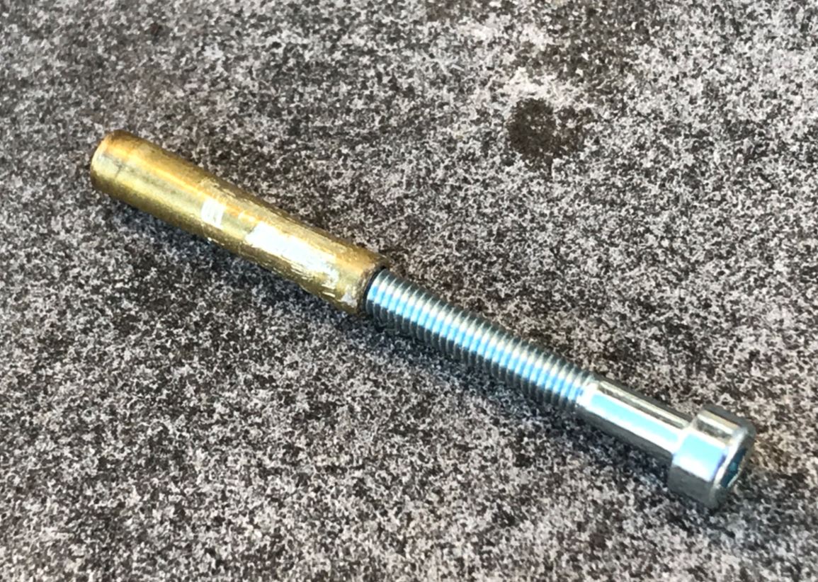 The assembled arm, the bolt is moving well into the tapped hole, with the required resistance, but not too much.