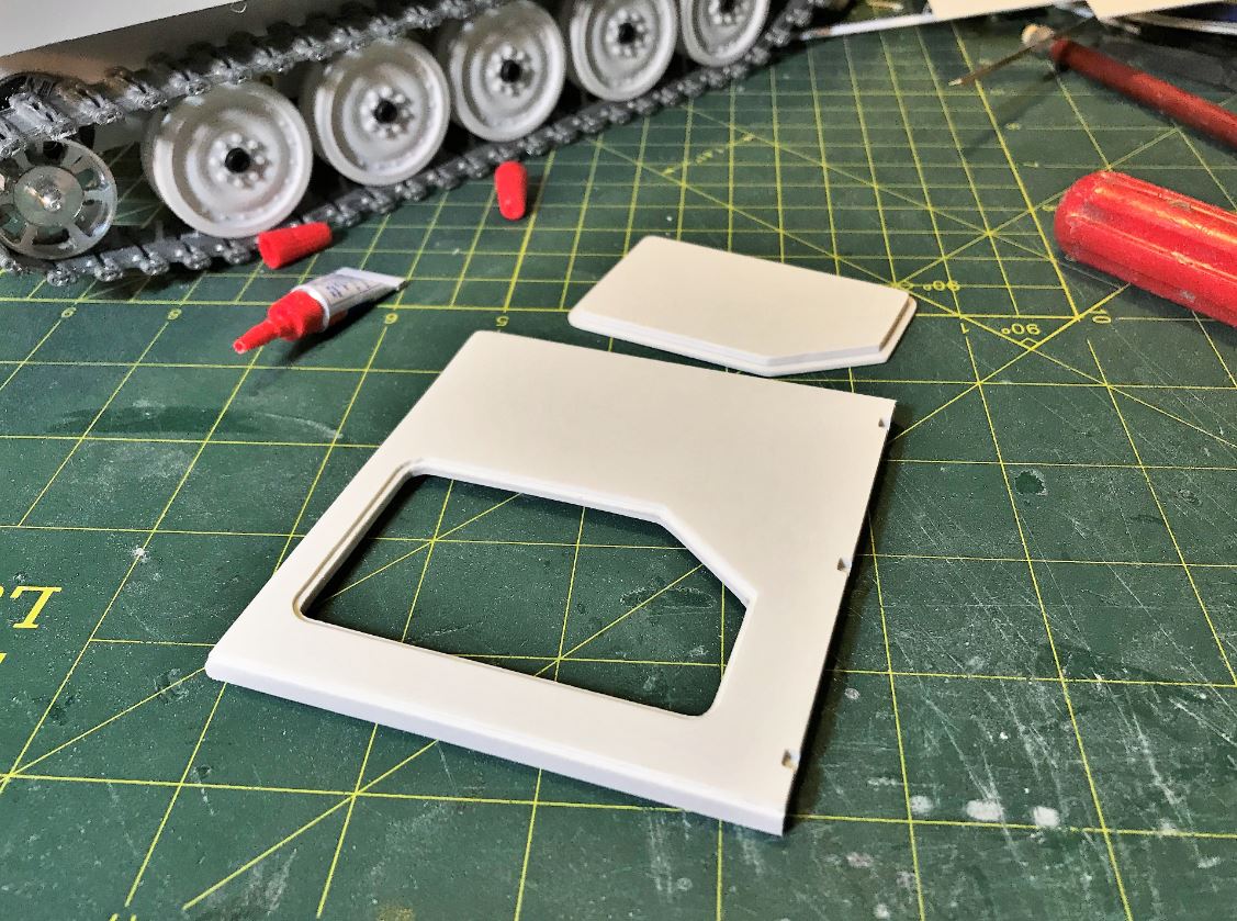 Ludwig does not provide much for the ramp, only this thin outer section and some hinges. This part is too wide and need to be reduced by 3mm on both sides. The rest of the ramp need to be completely scratch build but there is a residual plasticard section that is used on the door.