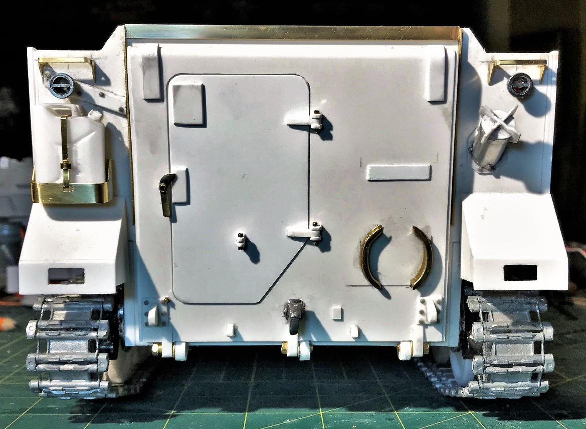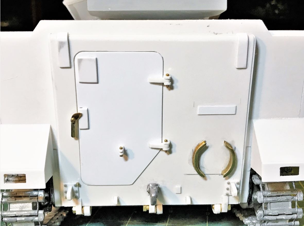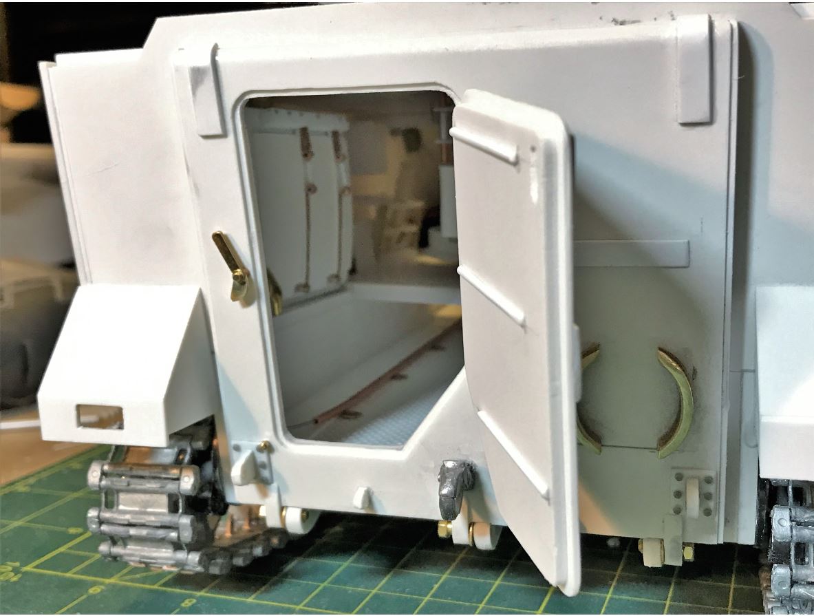 Before completing the interior, i had to create the rear ramp with the opening mechanism at the front. The MRV had a standard M113 ramp and mud guards. Notice the cylinder on the right of the ramp. This amphibious apparatus contains a field phone, a weird design.